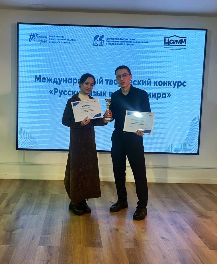Студенты Подготовительного отделения и первого курса программы «Русский язык в межкультурном пространстве» Департамента лингводидактики русского языка ИРНИТУ успешно выступили на Международном творческом конкурсе «Русский язык в сердце мира», завоевав несколько призовых мест. Мероприятие, организованное при поддержке Министерства по молодежной политике Иркутской области, собрало молодых людей, для которых русский язык стал не просто предметом изучения, но и способом для выражения глубоких чувств.