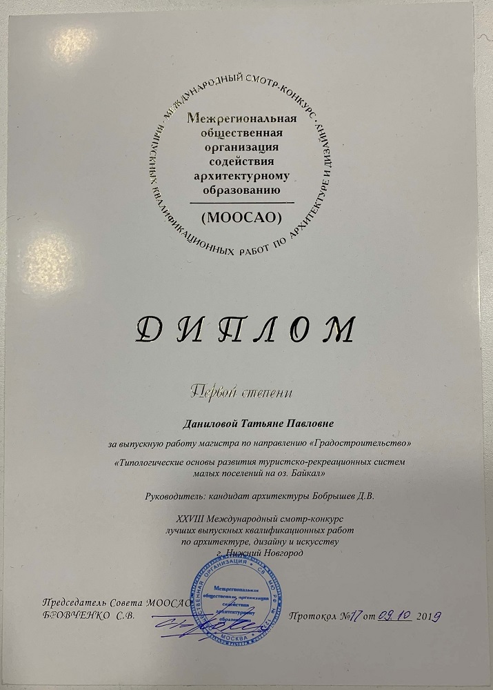 Преподаватели и выпускники кафедры архитектуры и градостроительства ИРНИТУ успешно выступили на XXVIII Международном смотре-конкурсе лучших выпускных квалификационных работ по архитектуре, дизайну и искусству, который прошел в Нижнем Новгороде в октябре 2019 г. https://www.istu.edu/news/52580/