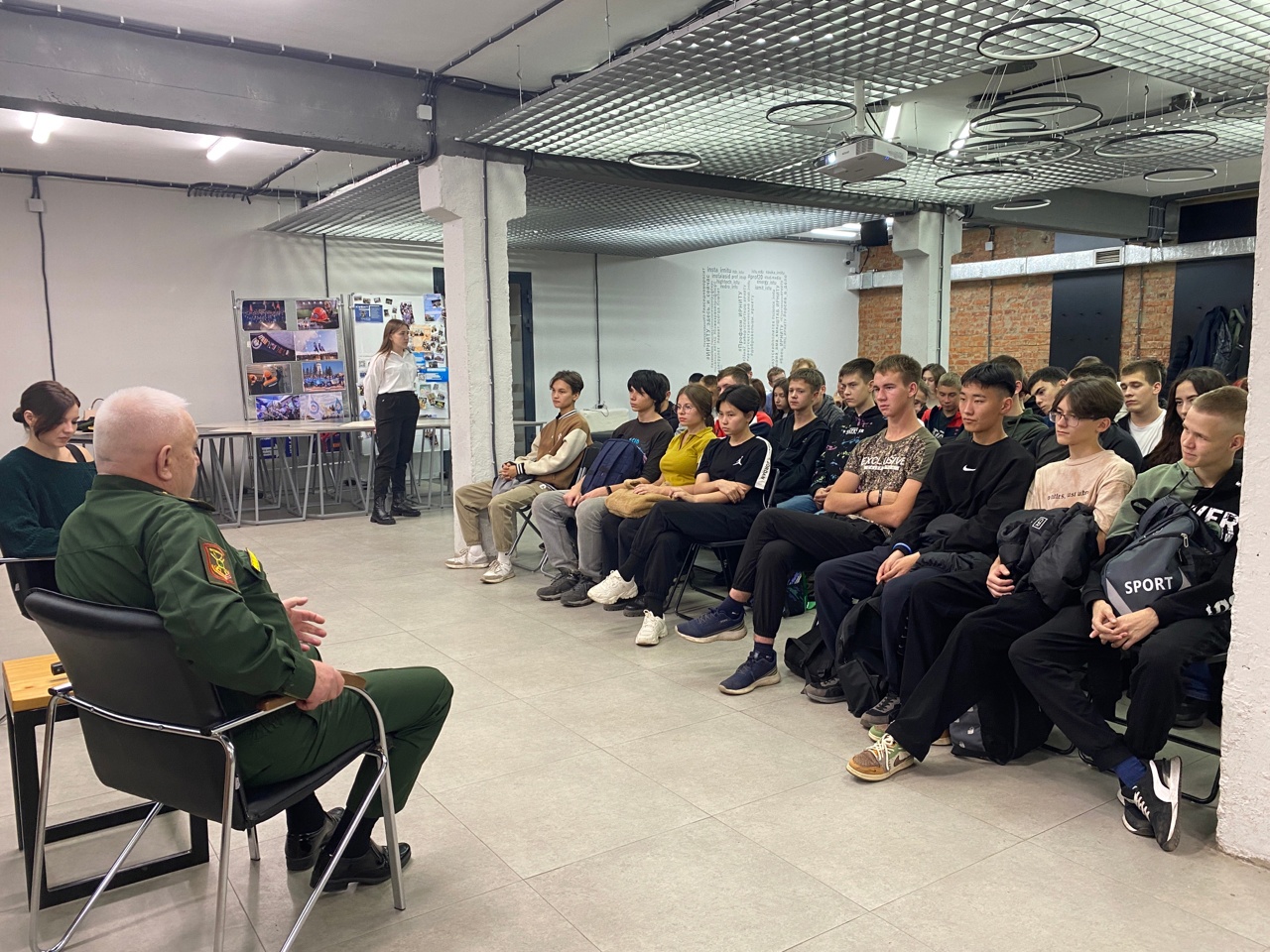 Студенты Геологоразведочного техникума 9 октября встретились с инспектором группы инспекторов Минобороны по Центральному военному округу, генерал-майором в отставке Виталием Головачом. Мероприятие вошло в цикл диалогов «Люди мужественных профессий», инициированный министерством по молодежной политике Приангарья.