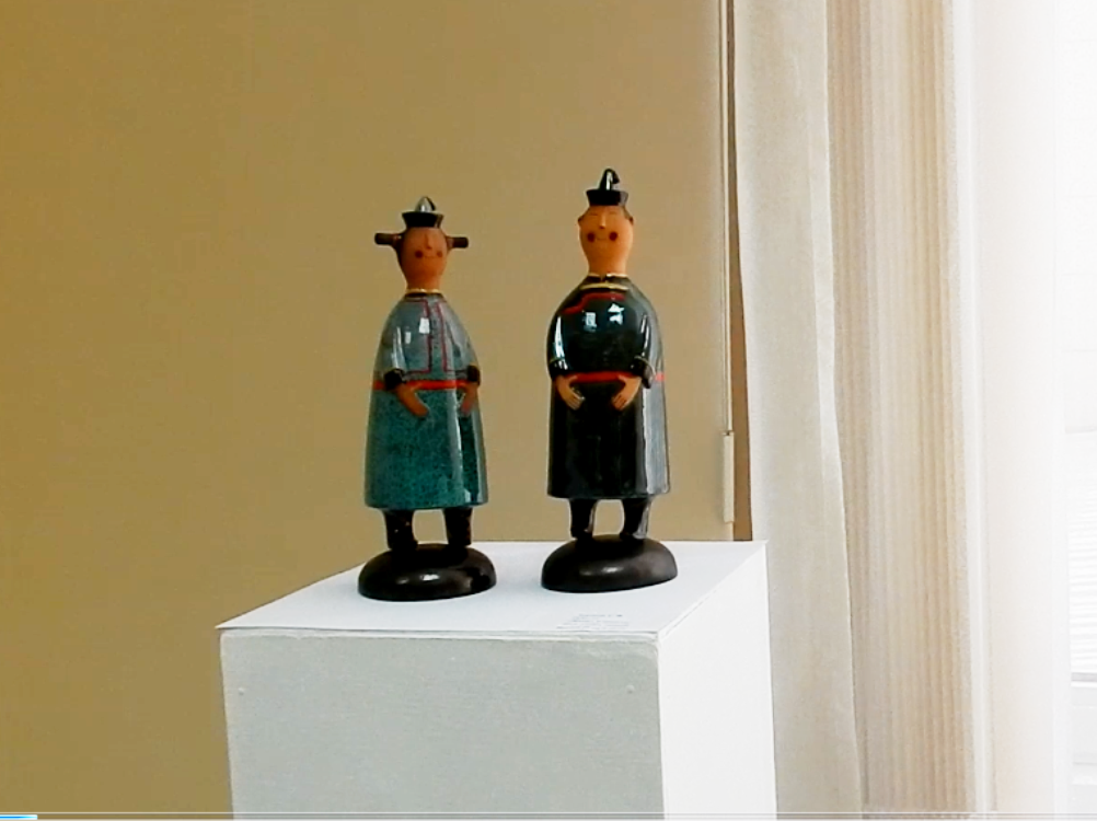 Андрей Поляница презентовал и две свежие работы – 100-сантиметровую скульптуру «Берегиня», в которой угадываются черты женщины, держащей в руках солнце и композицию «Джигит». Как отметил художник, типично славянское название «Берегиня» тесно перекликается с образом хранительницы очага, встречающегося во многих, в том числе и бурят-монгольской культуре. Еще один участник выставки, доцент Арсалан Зандраев презентовал лакированную шкатулку, серию стилизованных матрешек в виде байкальских нерп и мужчин в бурятских одеждах. Кроме того, гостей «Молчановки» привлекли грациозный всадник и глиняные аутентичные фигурки, созданные Георгием Борисовым.