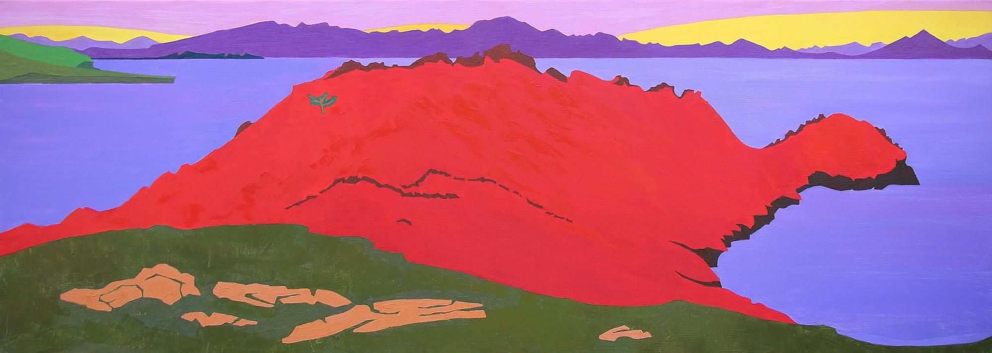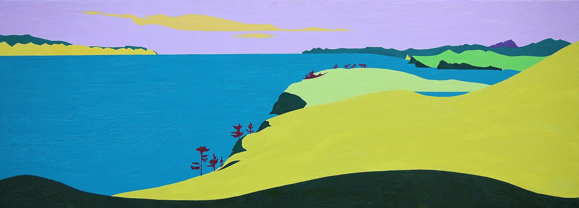 Природную тематику продолжила супруга Дмитрия, выпускница ИРНИТУ Ольга Дорохина. Удлиненные акриловые холсты, которые она использует, напоминают взмах птичьего крыла и позволяют более глубоко погрузиться в созерцание сюжета. Именно панорамные произведения Ольги Дорохиной стали украшением «СИЛЫ ЦВЕТА». Благодаря ее фантазии зрители могут увидеть небо, побережье Ольхона и воду Байкала, напоминающие строго очерченные сиреневые, алые и травяные фрагменты мозаики.