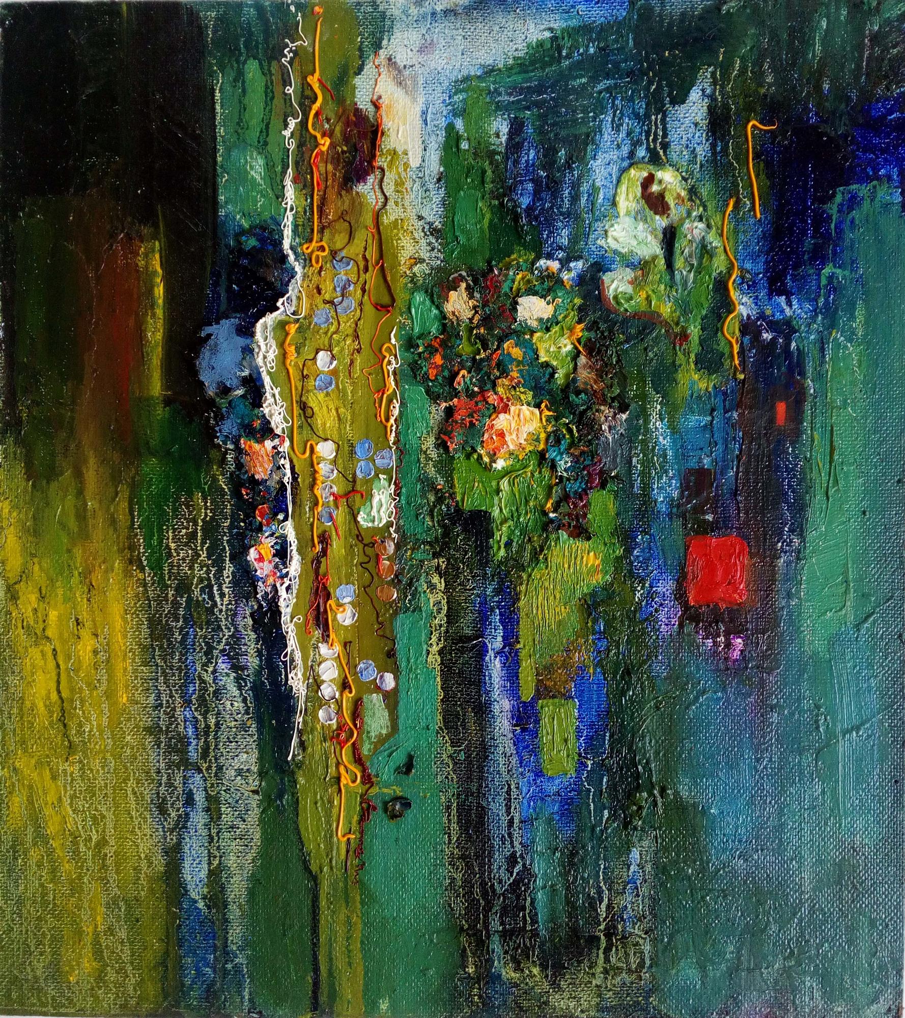 Внимание посетителей заинтересует «Поток» ангарчанки Марии Овчинниковой, выполненный в коричневых, бурых и серо-голубых тонах. Мастер передала величие стихии при помощи акриловых и масляных мазков, сотен протяженных и тончайших брызг.