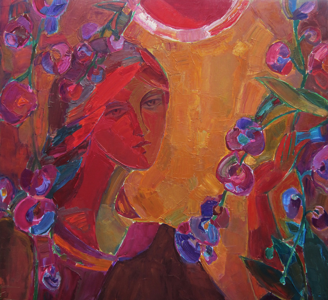 Еще одна участница вернисажа, преподаватель Анастасия Ижганайтене искала вдохновение в православной архитектуре, цветущих орхидеях, изящных чертах лица женского лица. В работах Анастасии преобладает спокойная палитра - розовый и лиловый оттенки.