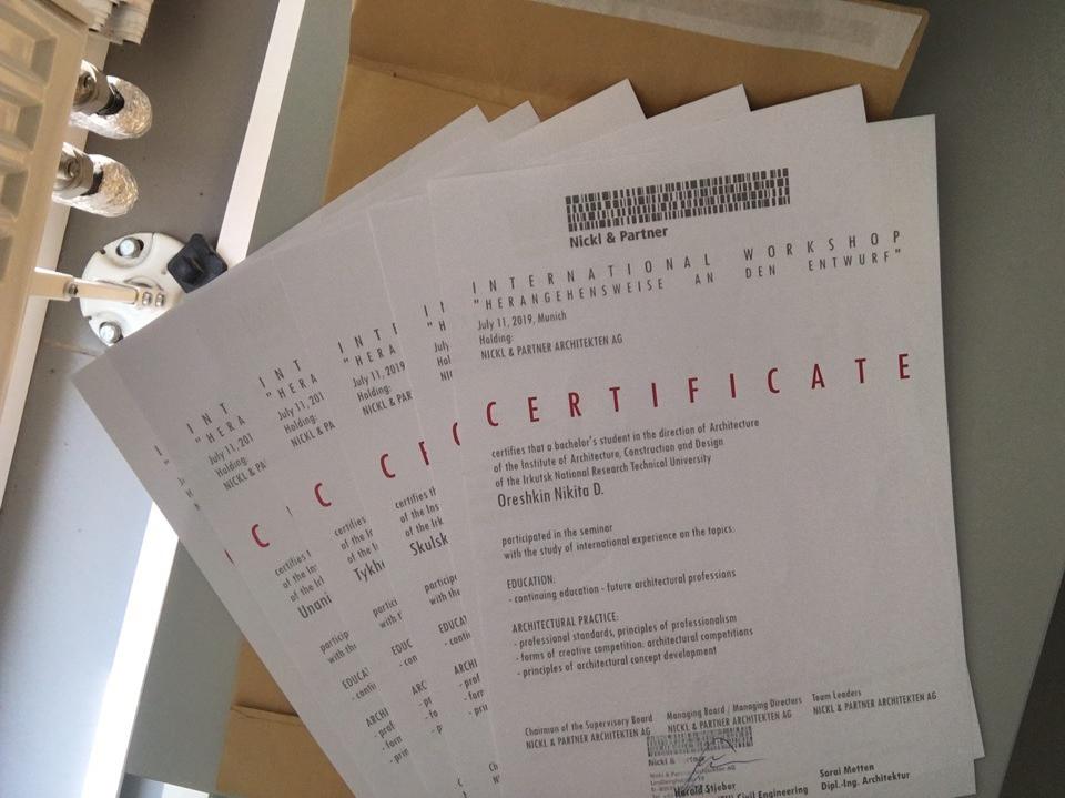 «Мы исследовали новый и старый корпусы Технического университета Мюнхена, а также побывали в Академии изящных искусств. В крупном бюро Nickl & Partner Architekten München для нас подготовили специальную лекцию о создании проектов и направлениях деятельности. Мы узнали о том, что немецкие архитекторы, работающие в этом бюро, специализируются на проектировании госпиталей и научных корпусов институтов. Кроме того, нам подробно рассказали о конструкциях главного офиса бюро, планировках стен и потолков, - говорит студентка. - Мы поддерживали беседу с коллегами на английском языке. Это была отличная языковая практика. По результатам встречи представители бюро вручили нам сертификаты об участии в семинаре».