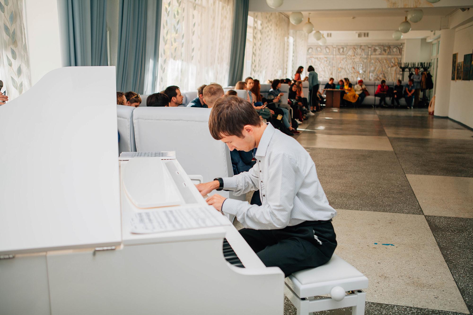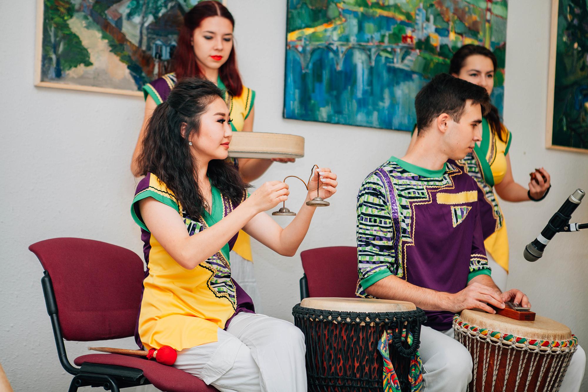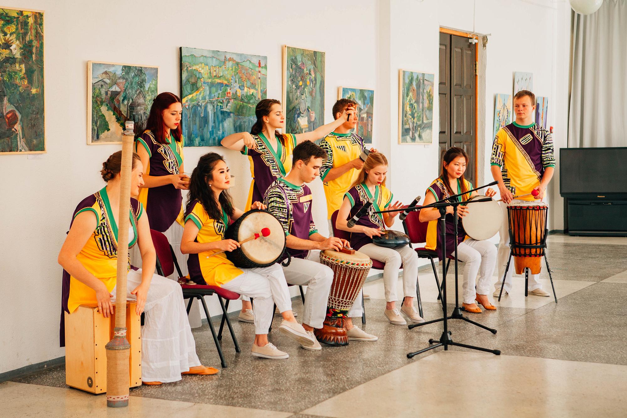 Открытие выставки украсили выступления студии этнической перкуссии "Этнобит", студии эстрадного вокала и соло на саксофоне в исполнении будущего недропользователя Александра Калишина.