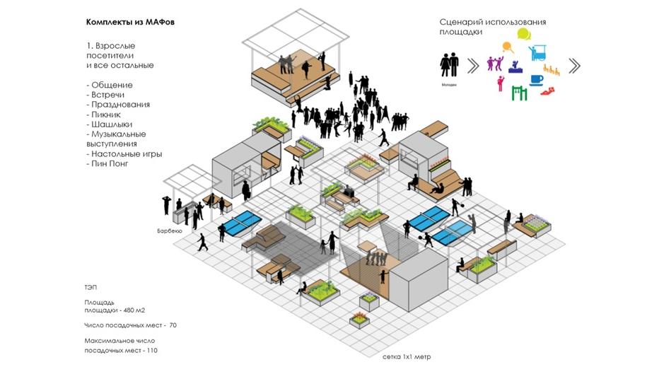 «Обустройство иркутских дворов отличается минимализмом и однотипностью. Безликое пространство беспокоит местных жителей, - говорит второкурсница. - Я подумала о том, что можно менять модули в зависимости от территории и назначения, когда увидела, как мой кот «стекает» с подоконника. Вспомнила об особой гибкости кошек и их умении подстраиваться под форму предмета. Способность модулей варьироваться, подобна пластике кота, поэтому «КОТ» превращается в «КОмфорТ».