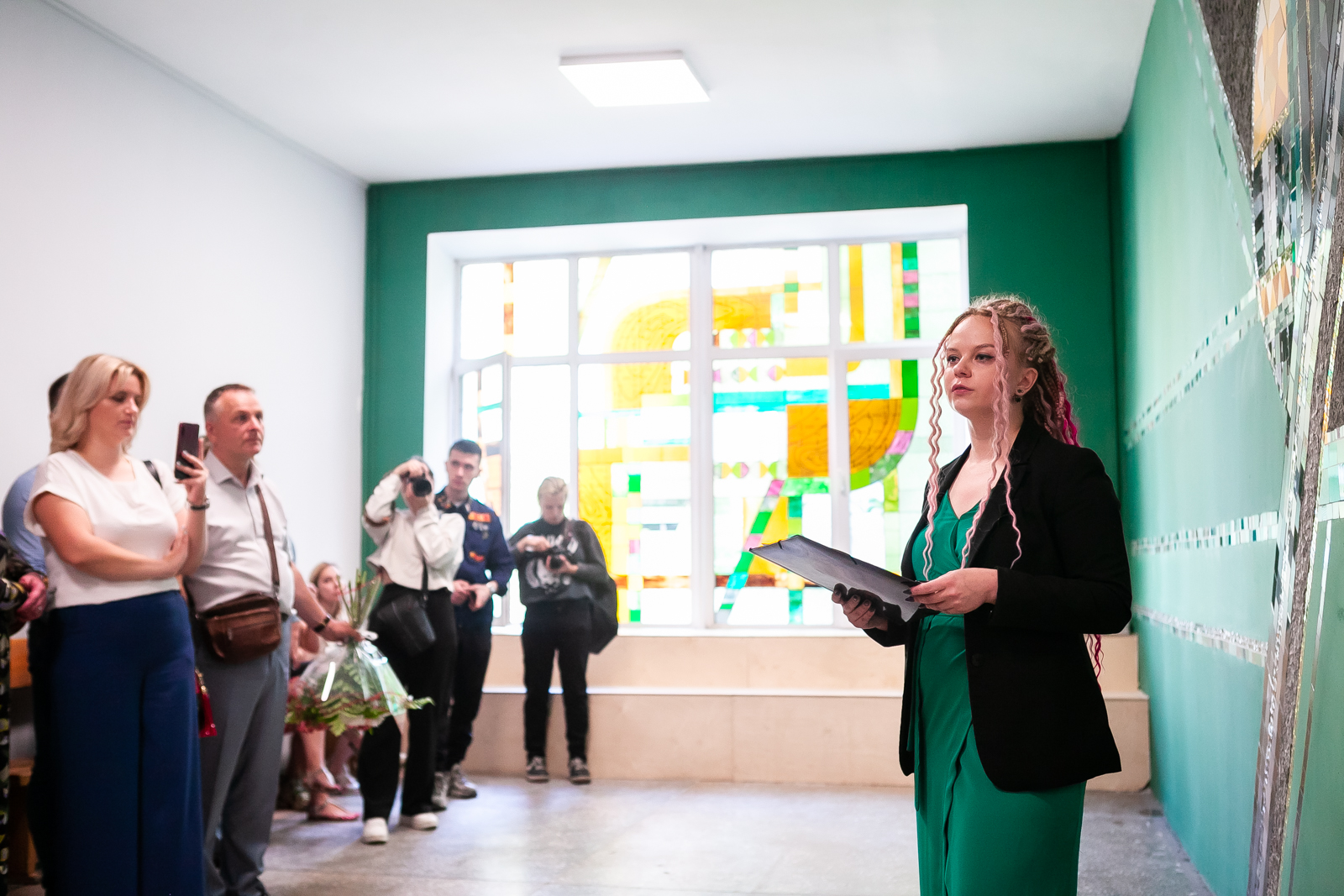 Витраж и два мозаичных панно украсили пространство корпуса «И» Иркутского политеха (первый этаж). Арт-объект «Энергия созидания» создали выпускницы кафедры монументально-декоративной живописи и дизайна имени В.Г. Смагина Наталья Таюрская, Мария Баранова и Мария Антонова.