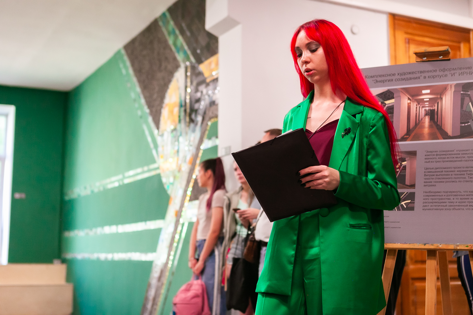 «Нам удалось гармонично соединить три произведения, выполнить качественный художественный ансамбль. В корпусе «И» уже были созданы интерьерные цветовые решения, нам следовало грамотно их дополнить, закрепить результат.
