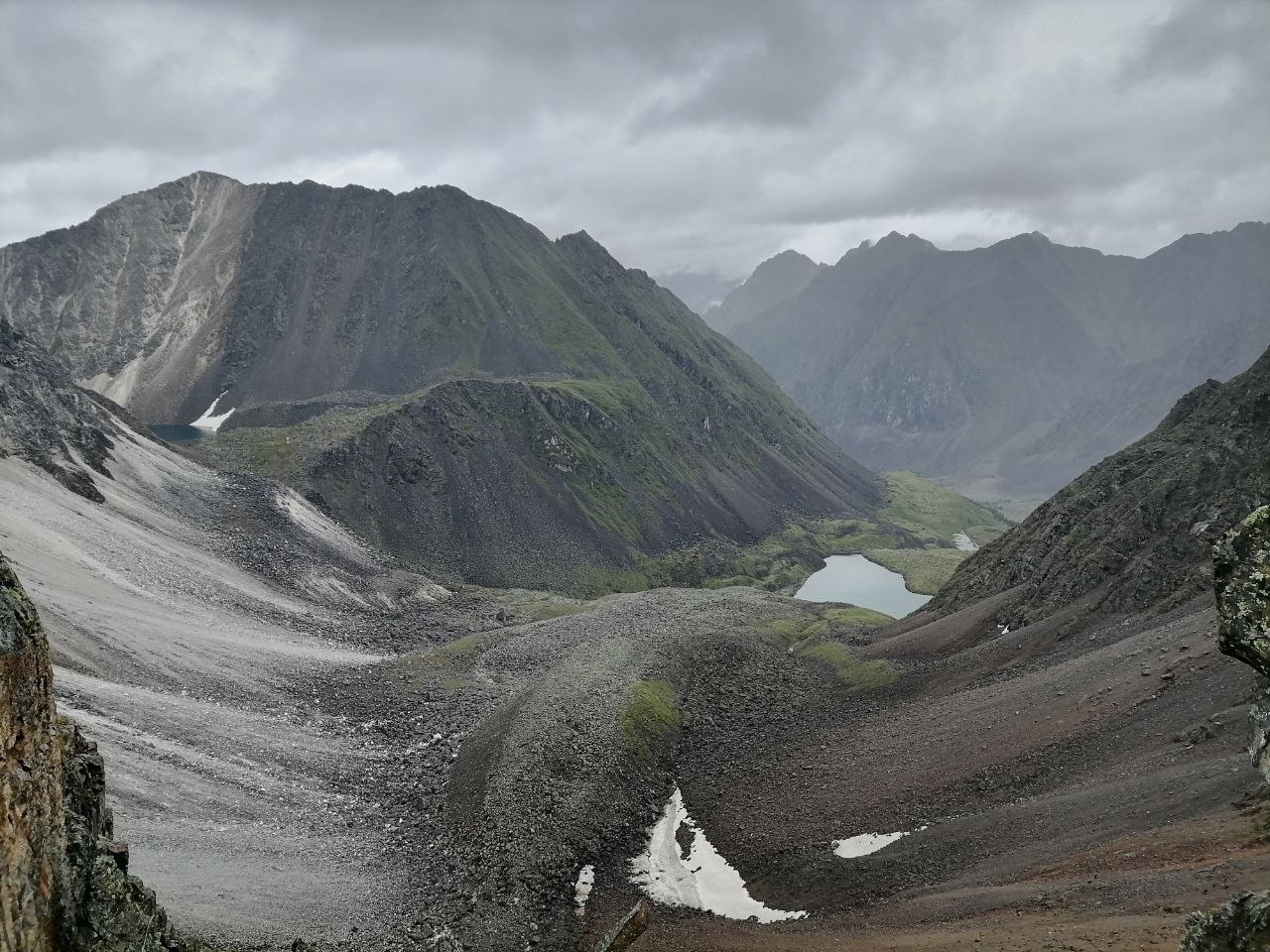 По реке Звериной вышли к реке Билюта, бродили ее «стенкой», придерживая друг друга. Дальше перевал Ветреный, с которого открывается вид на два живописных озера.