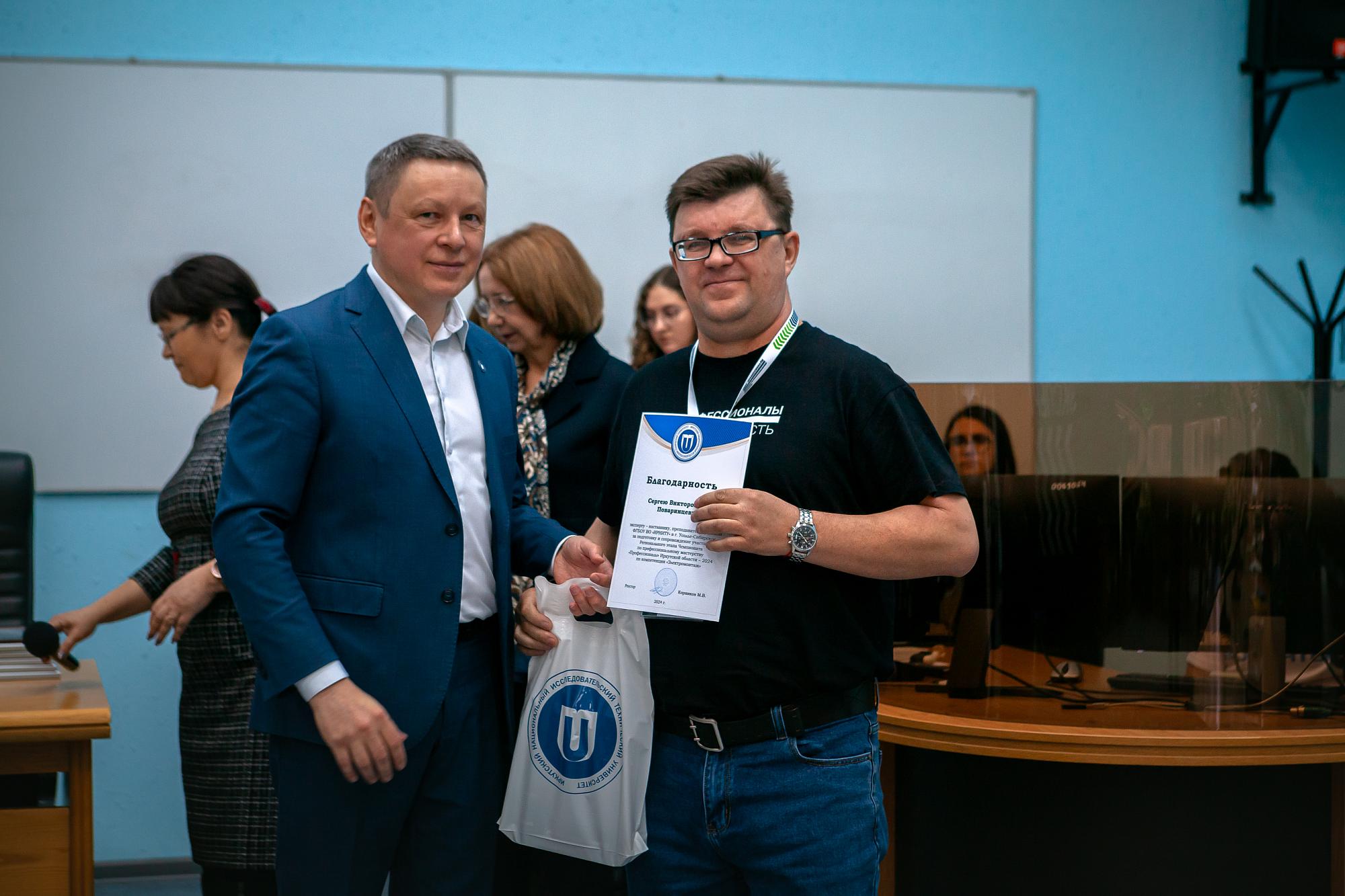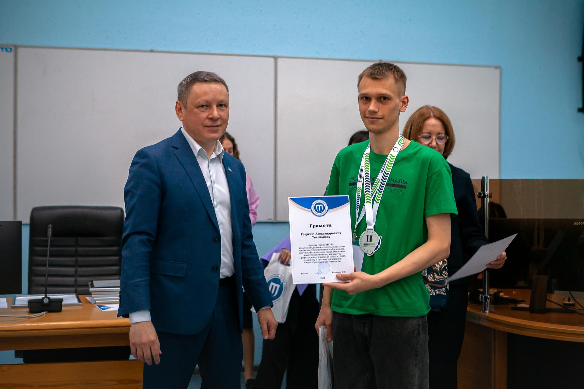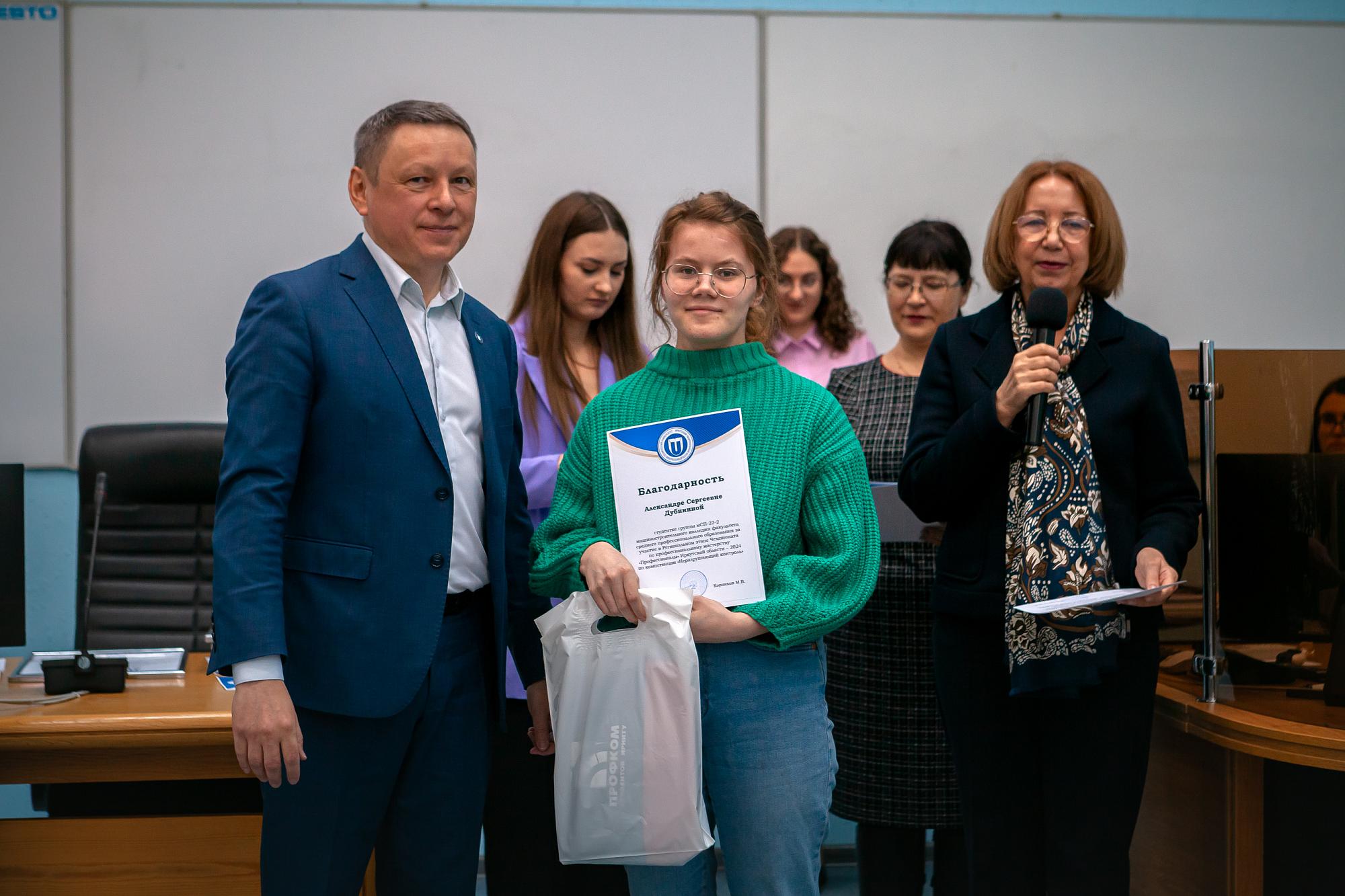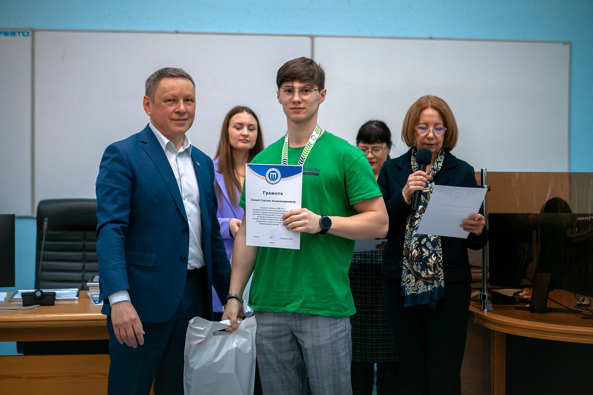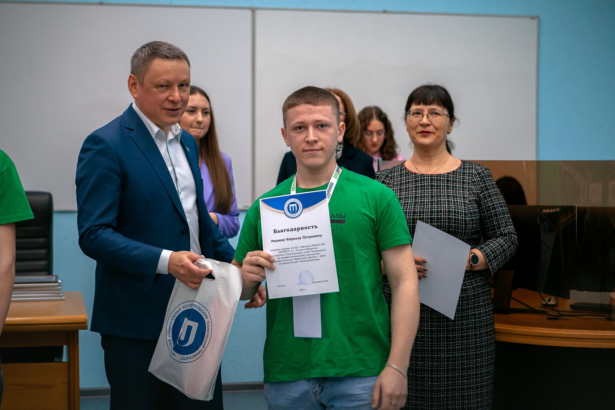 Ректор Иркутского политеха Михаил Корняков пожелал молодежи успехов и новых свершений. Он вручил политеховцам грамоты за успешное выступление на чемпионате.