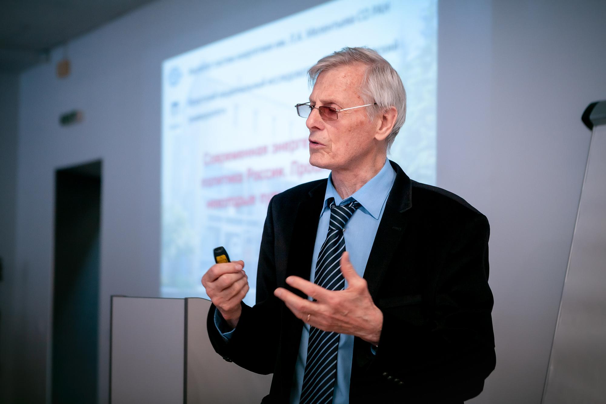 Пленарное заседание открыл доклад главного специалиста по электроэнергетическим системам ИСЭМ СО РАН Владимира Головщикова, который посвятил своё выступление современной энергетической политике России.