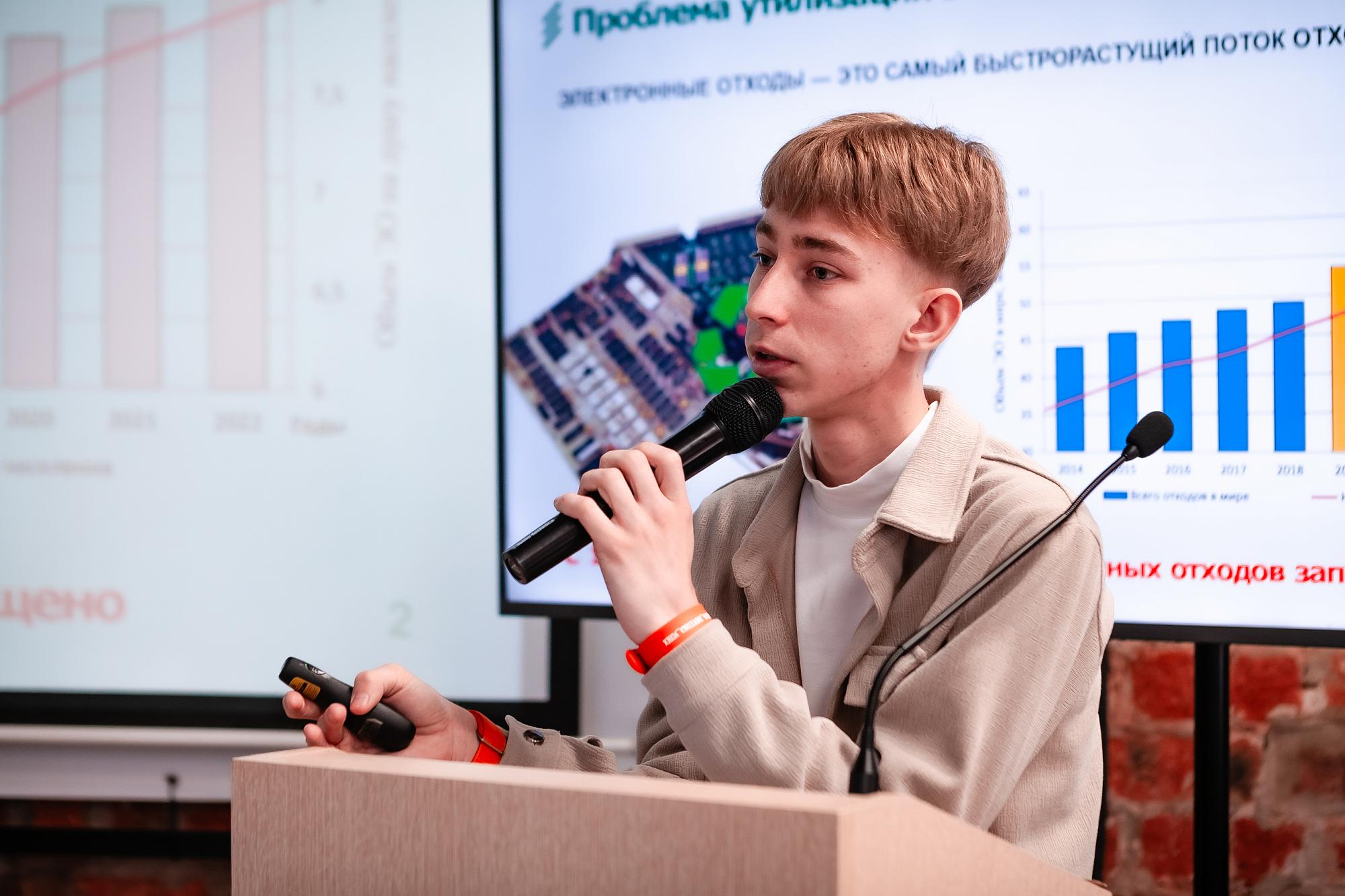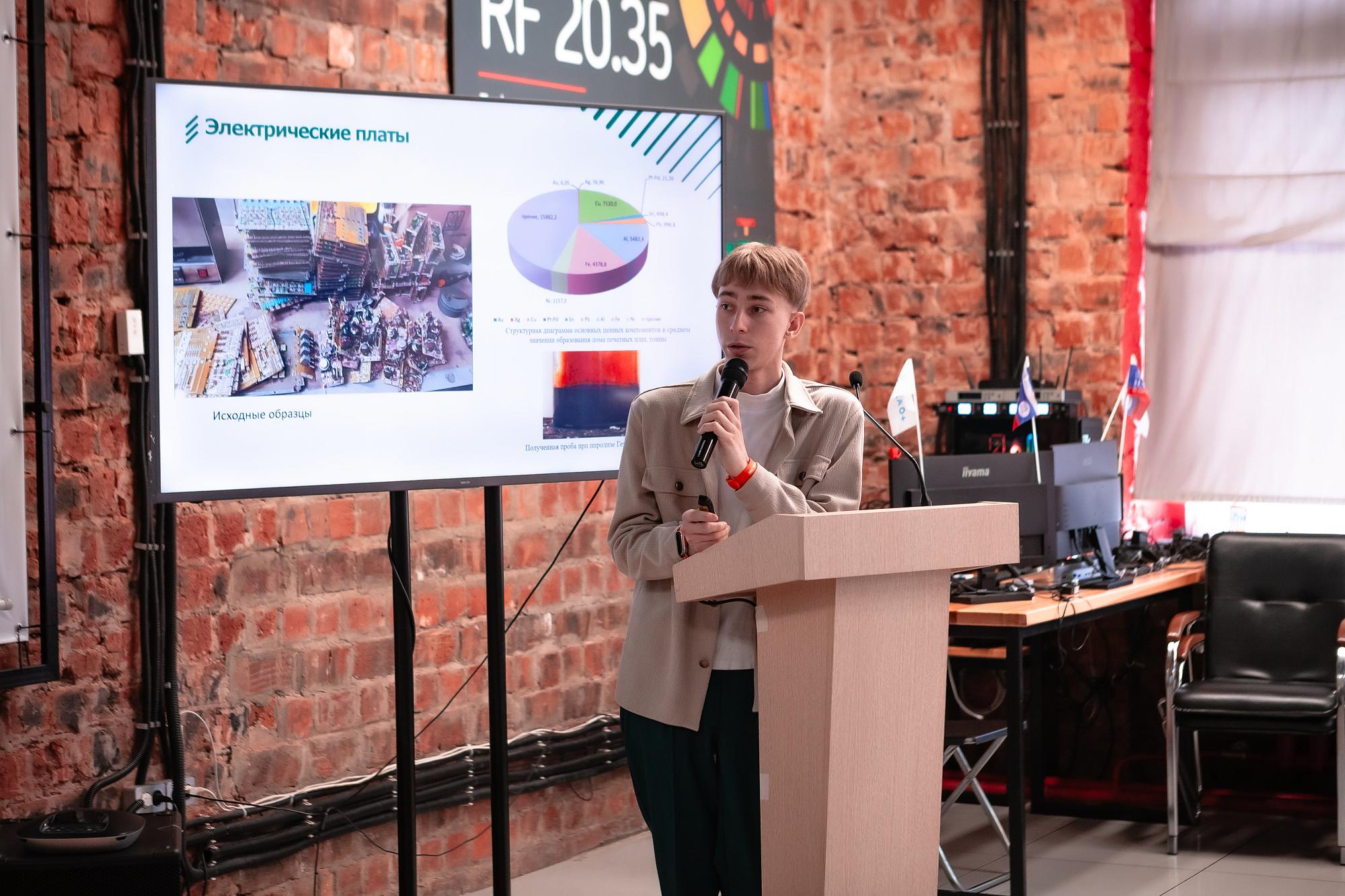 Алексей Горшков занят переработкой электронного лома (платы от приборов) методом пиролиза. Он работает над технологией, решая вопрос экологичной утилизации. Проект является победителем конкурса "Молодой изобретатель" и получил грантовую поддержку. Команде Алексея удалось создать специальную установку. Предложенный политеховцами метод позволяет переработать весь состав электрических плат. В ходе исследований получены образцы пиролиза, выделены жидкая, твёрдая и газообразная фазы.