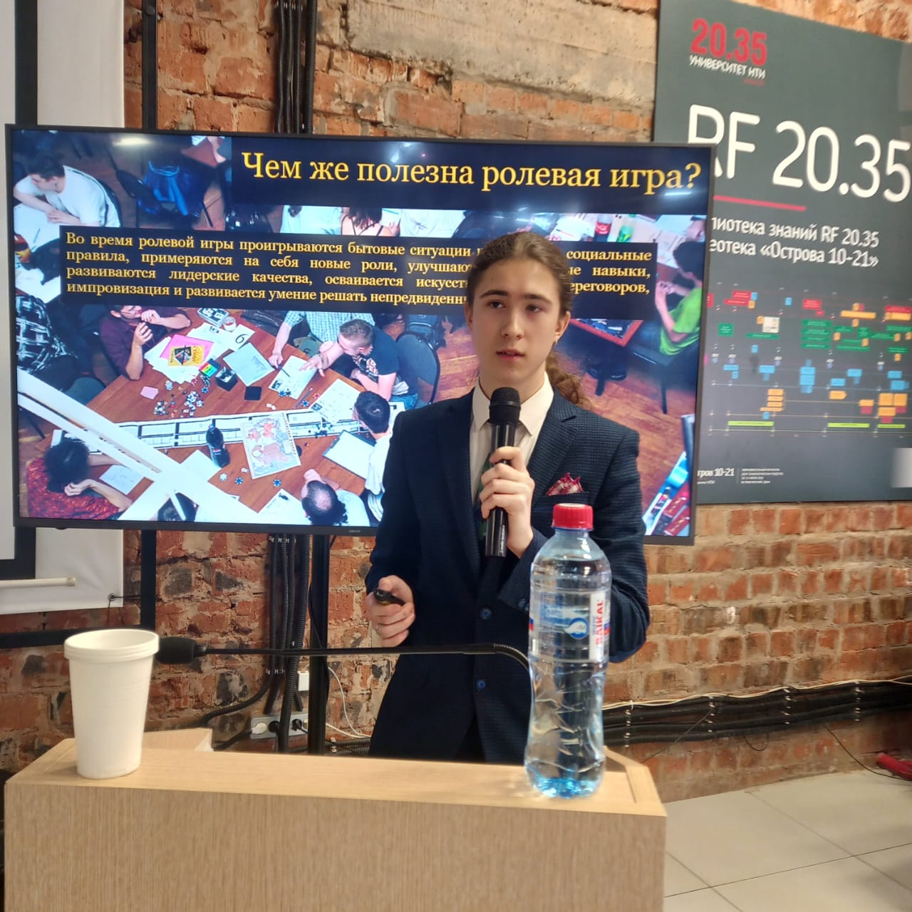 Будущий архитектор-реставратор, первокурсник Семен Иванов лидировал в направлении «Риторика от античности, до современности». Он представил ролевые игры как способ развития коммуникативных навыков. Автор отмечает, что даже обычное, на первый взгляд, развлечение способно принести пользу и помочь в развитии. Семен опирался на личный опыт в настольных играх и привёл научные данные о пользе «ролёвок»: