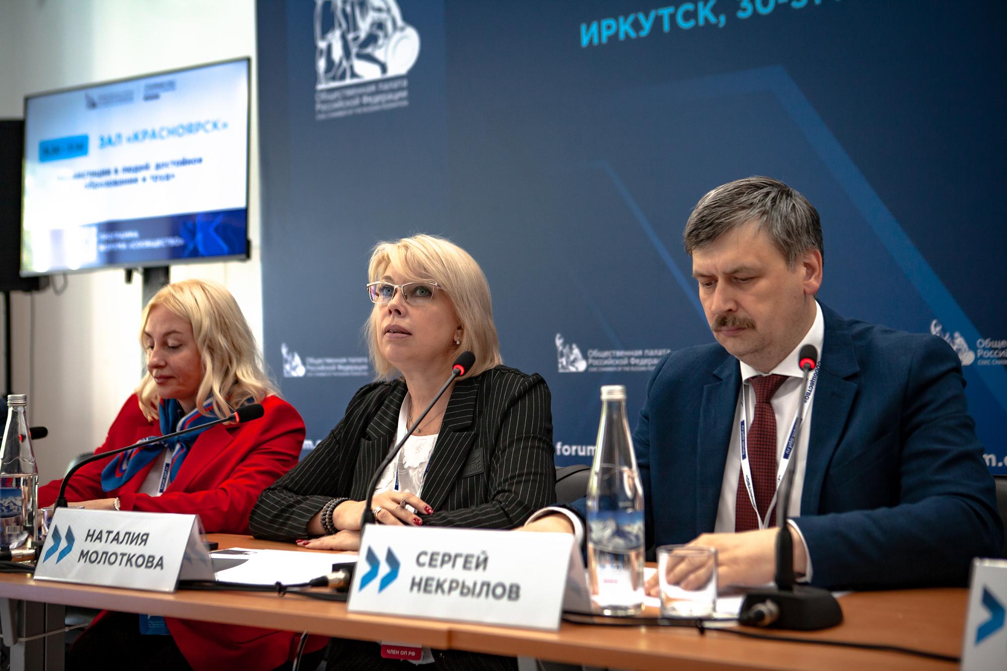 Модераторами кадровой дискуссии стали члены Комиссии Общественной палаты РФ по развитию высшего образования и науки Наталия Молоткова и Сергей Некрылов. К диалогу присоединились ректор Михаил Корняков, представители профильных министерств Приангарья и ведущих вузов региона.