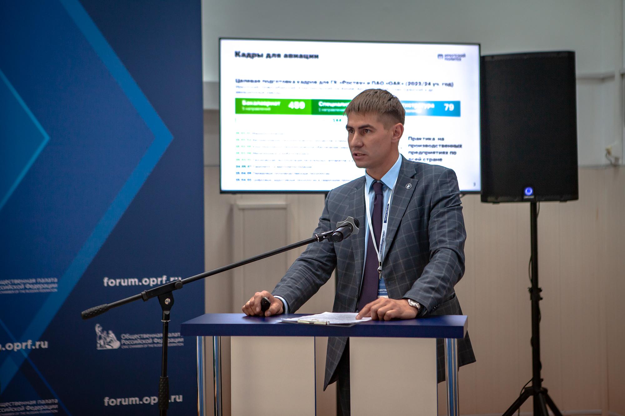 Заместитель руководителя стратегического проекта iDIT, руководитель НИЛ «Цифровые технологии производства изделий из полимерных композиционных материалов» Юрий Иванов представил вклад ИРНИТУ в подготовку инженеров для авиации на форуме Общественной палаты РФ «Сообщество». Выступление вошло в программу дискуссионной площадки «Инвестиции в людей: достойное образование и труд» (трек «Кадры»).