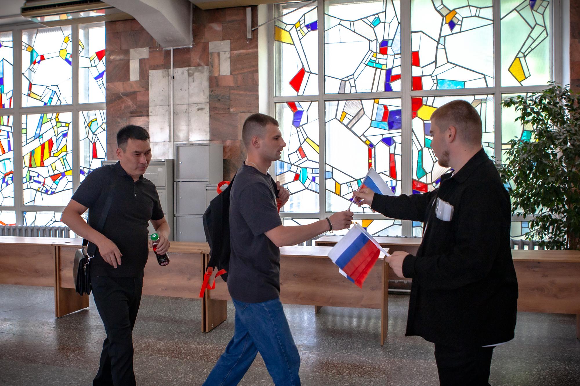 Накануне государственного праздника Дня России в ИРНИТУ состоялась патриотическая акция «Российский триколор». Студентам и сотрудникам университета раздали около 300 флагов, рассказали об истории праздника. Организаторы акции – Координационный центр, Управление по молодежной политике и Профком студентов.
