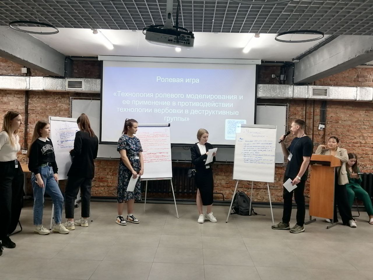 В Иркутском политехе 18 июня состоялась ролевая игра «Технология ролевого моделирования и ее применение в противодействии технологии вербовки в деструктивные группы». Интерес к мероприятию проявили студенты 1 курса, обучающиеся по направлению подготовки «Юриспруденция», специальности «Правовое обеспечение национальной безопасности».