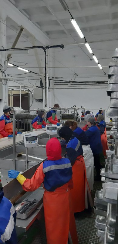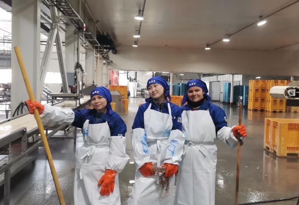 «Сначала познакомились с производством и коллективом предприятия, ждали поступления рыбы. Сейчас работаем с большими партиями улова, поэтому времени на отдых не так много. Рабочий день длится 12 часов. Мы обрабатываем и упаковываем продукцию, затем отправляем её на продажу или вторичную переработку.
