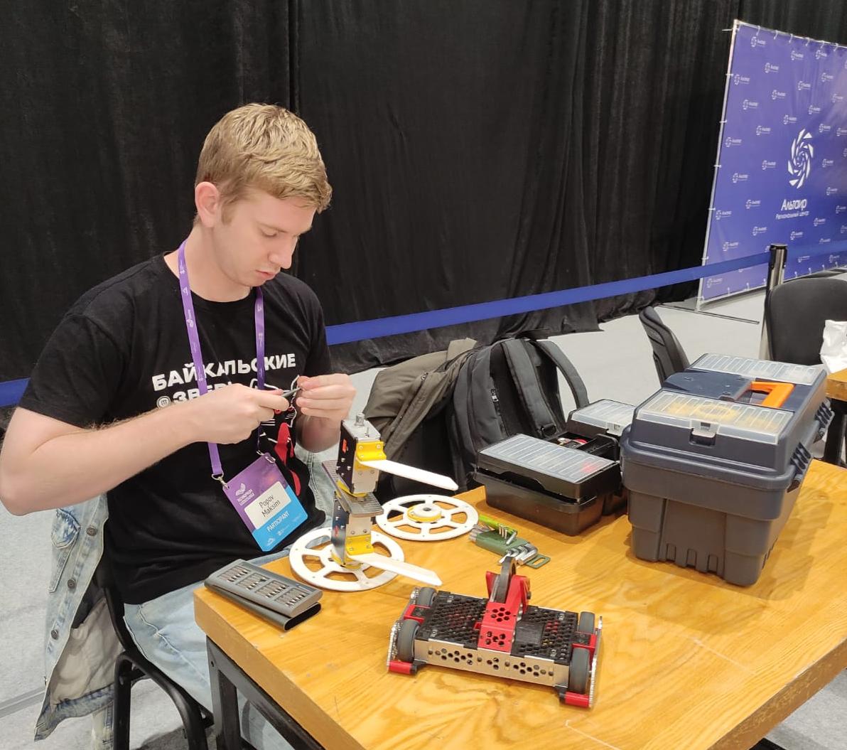 Он подчеркивает, что ему как инженеру больше нравится проектировать и собирать роботов. Подобные битвы - это возможность проверить реалистичность своих идей. Кстати, готовить роботов к новосибирской битве Максиму Попову помогал Арсений Горшков, с детства занимающийся в центре «Робототехника» ИРНИТУ. На момент поездки на «Технопром» Арсений был абитуриентом. Теперь он – студент направления «Мехатроника и робототехника».