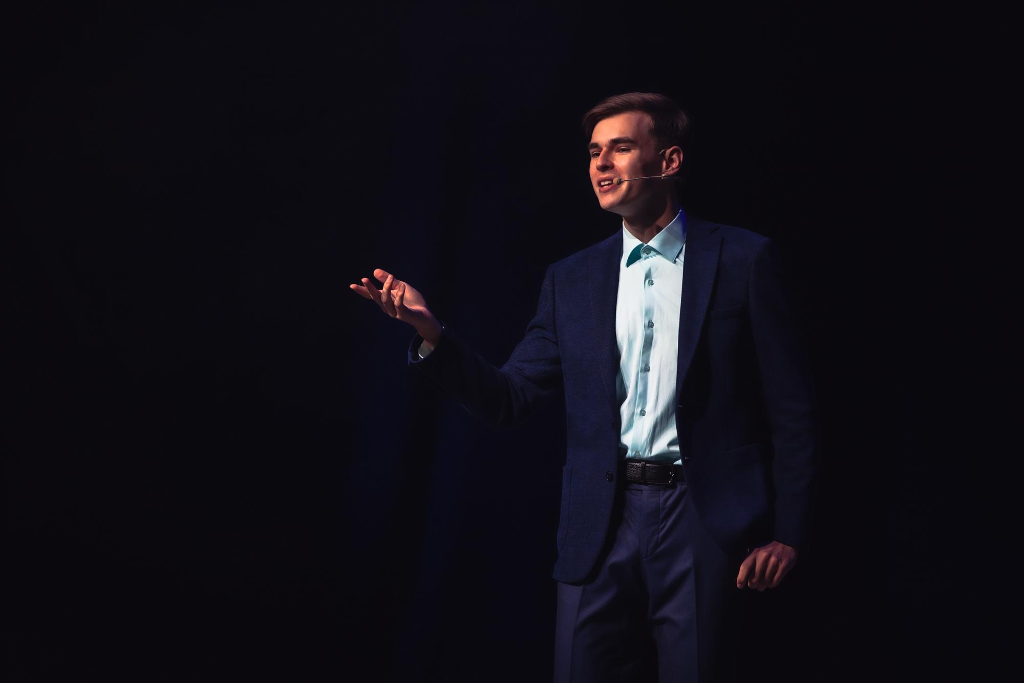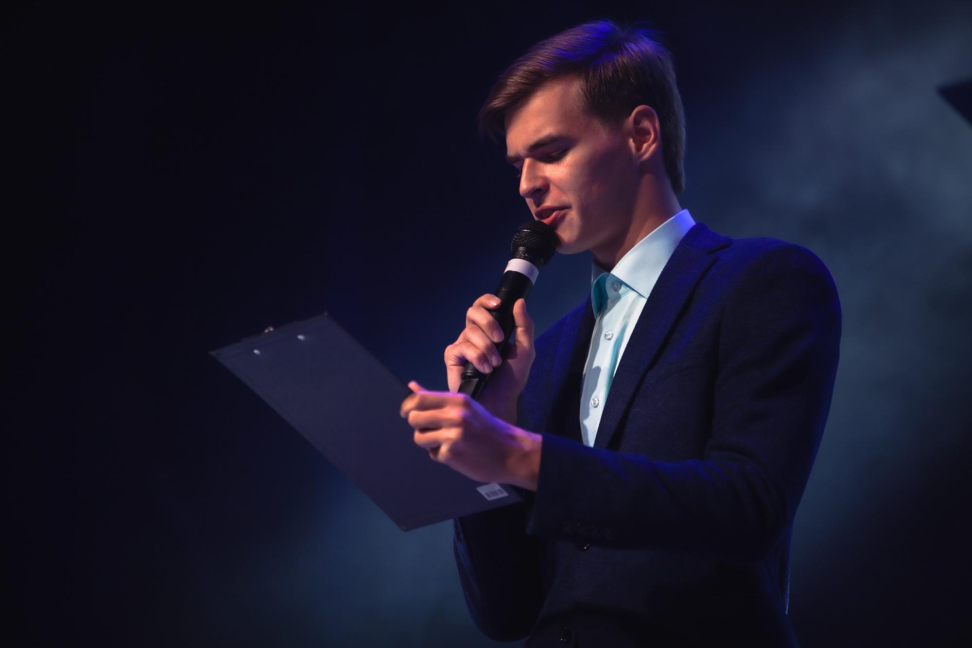 Виктор Филатов в стихах рассказал студентам, как осмысленно говорить со сцены, вникать в образы, чувствовать настроение и поддерживать интерес публики. Студент познакомил аудиторию с произведением Василия Уриевского «Стих про стих».