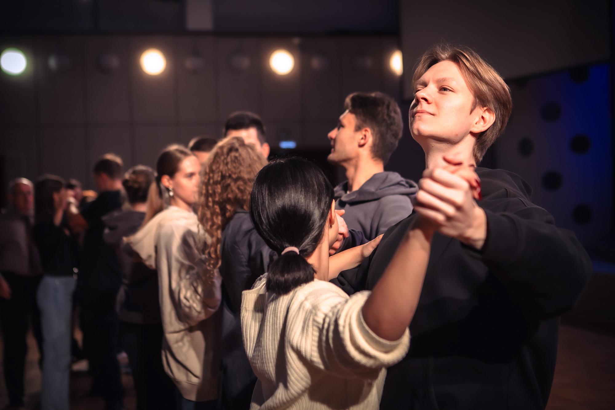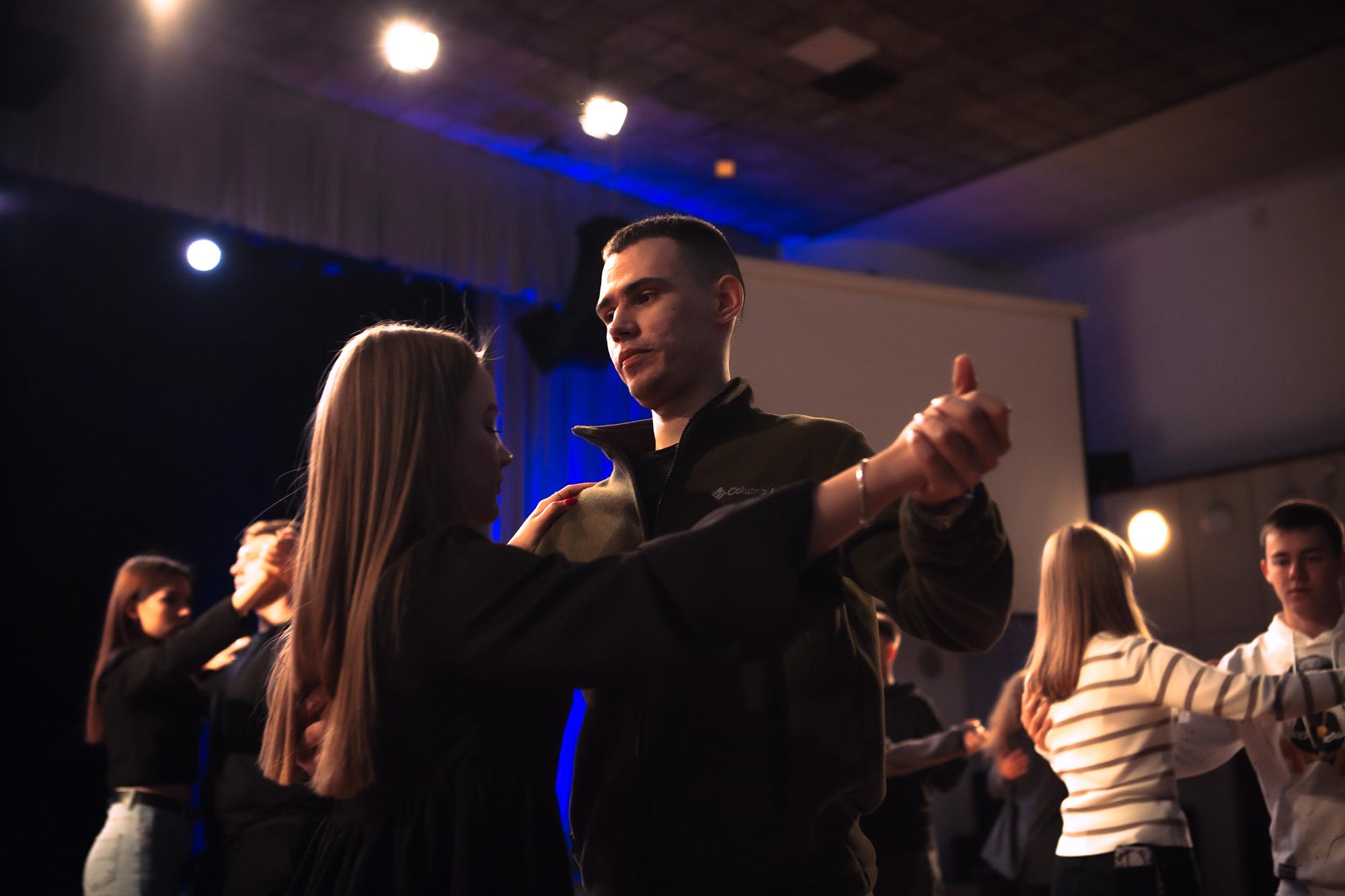 Творческий эксперимент поддержал руководитель ансамбля бального танца «Академик» Максим Скоморовский, с которым девять студенческих пар разучили вальс.