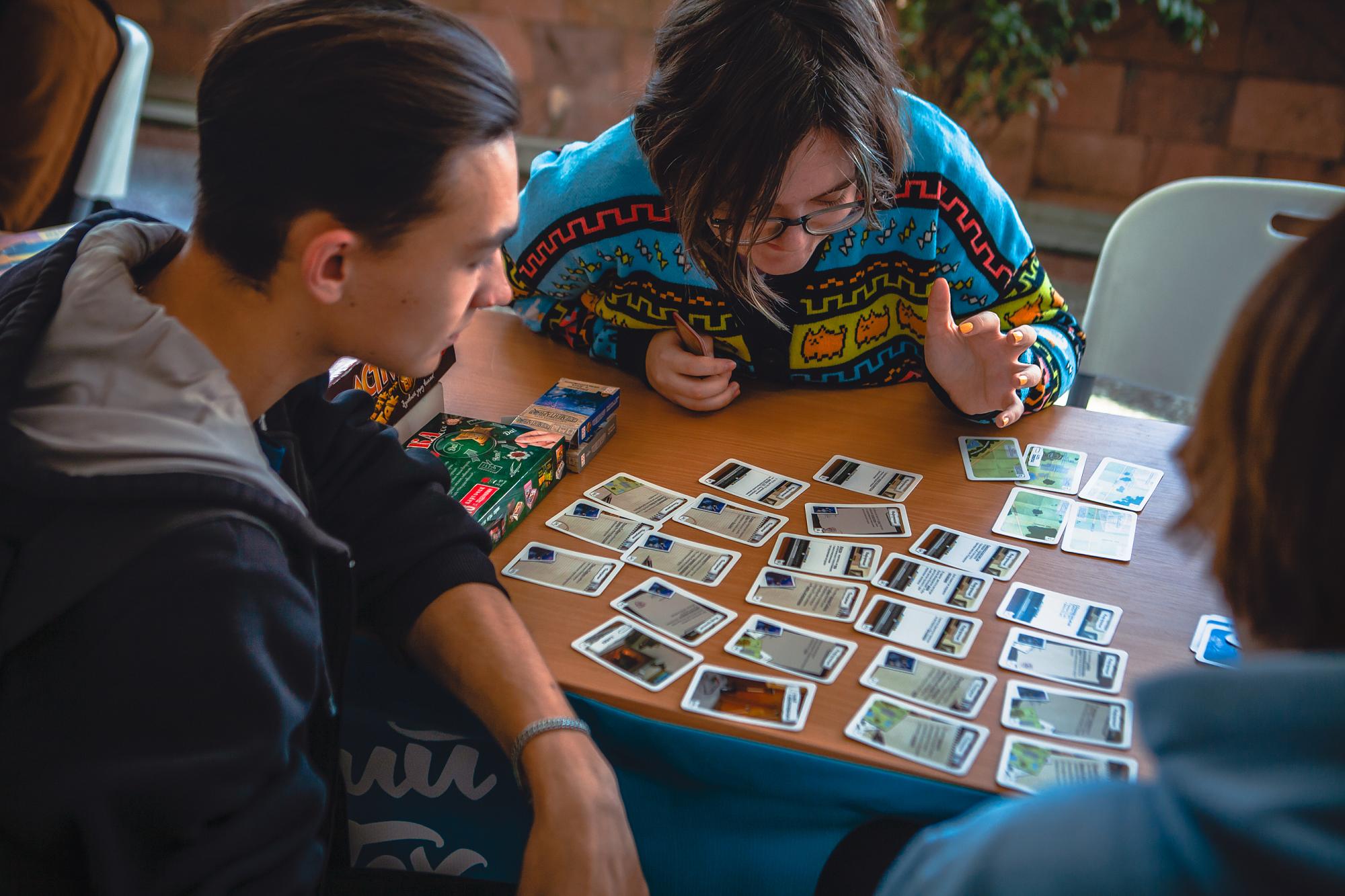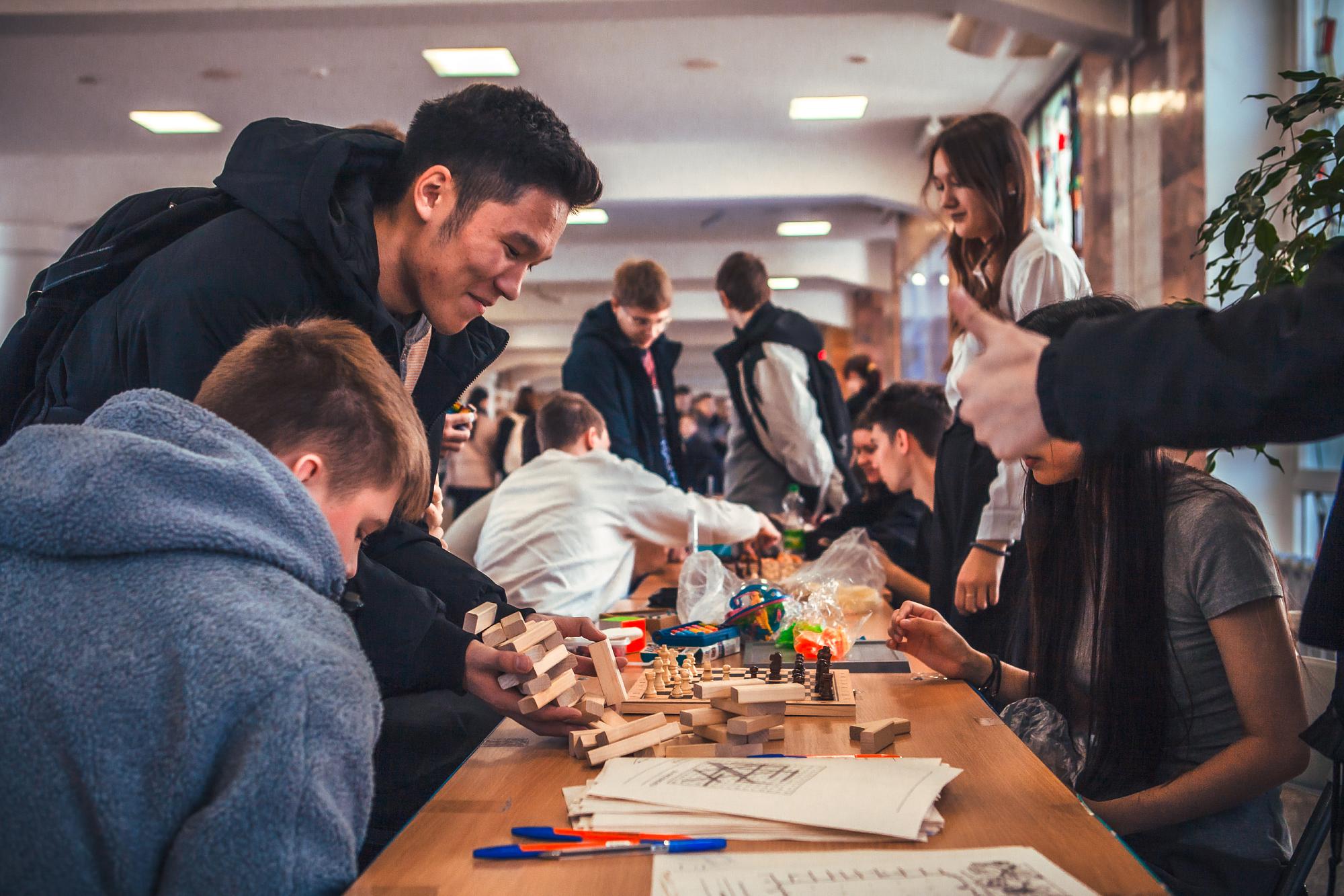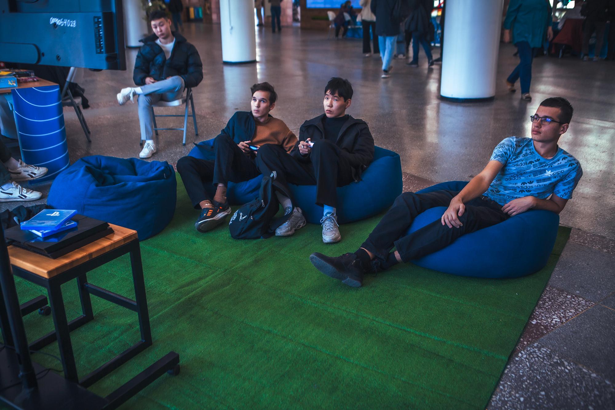 В холле работали несколько площадок. Самой яркой стала зона аквагрима – место перевоплощения в супергероев и сказочных персонажей. Политеховцы также могли разместиться в удобных креслах-мешках и поиграть в приставки. Тем, кто любит проводить время с пользой для ума, предложили головоломки и «настолки». Гости проходили семейную викторину и тест по психологии отцовства.
