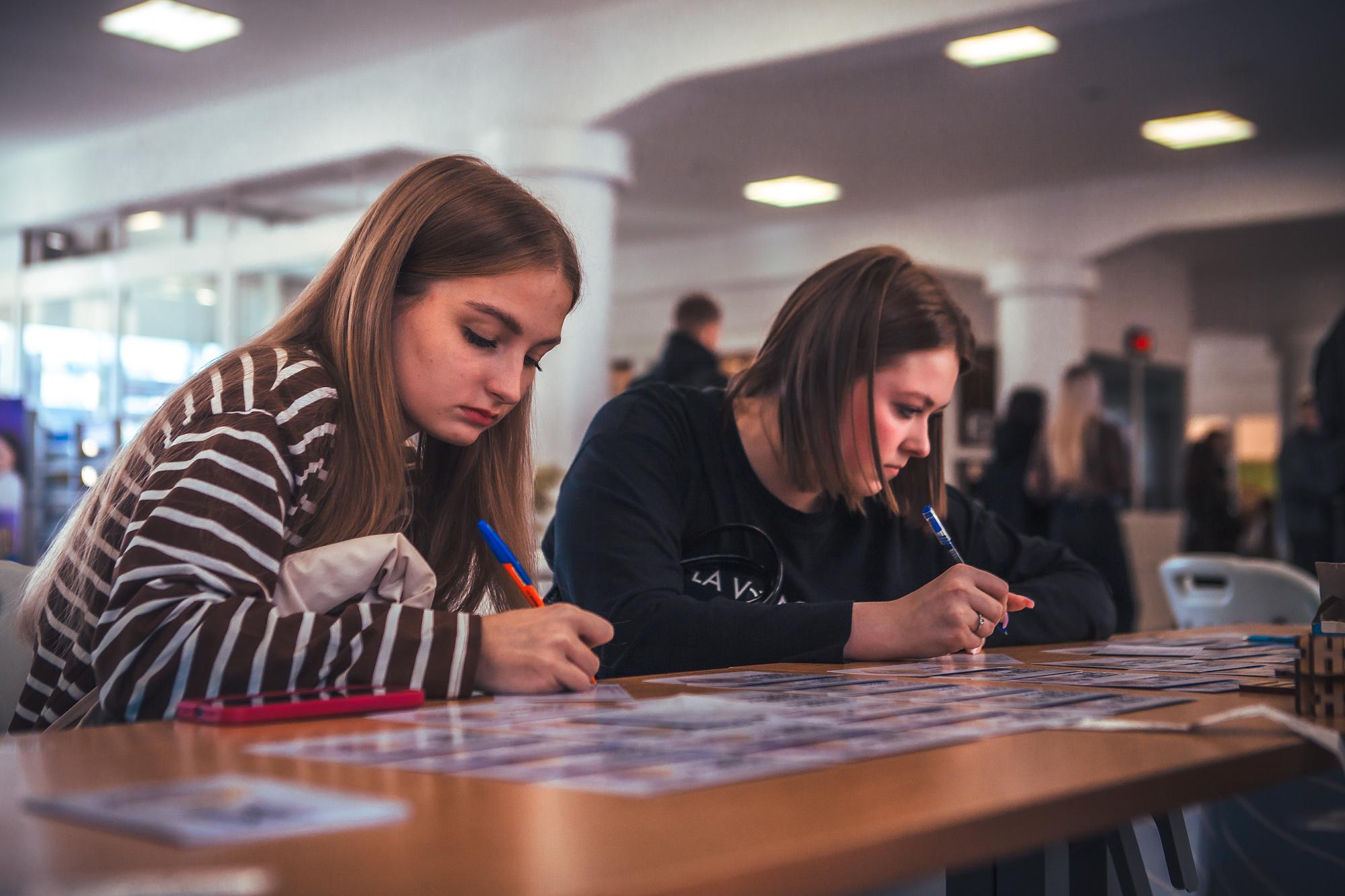 Большое внимание студенты и сотрудники университета проявили к зоне создания открыток. Одной из первых письмо с теплыми словами для любимого папы написала будущий рекламист Анастасия Логинова.