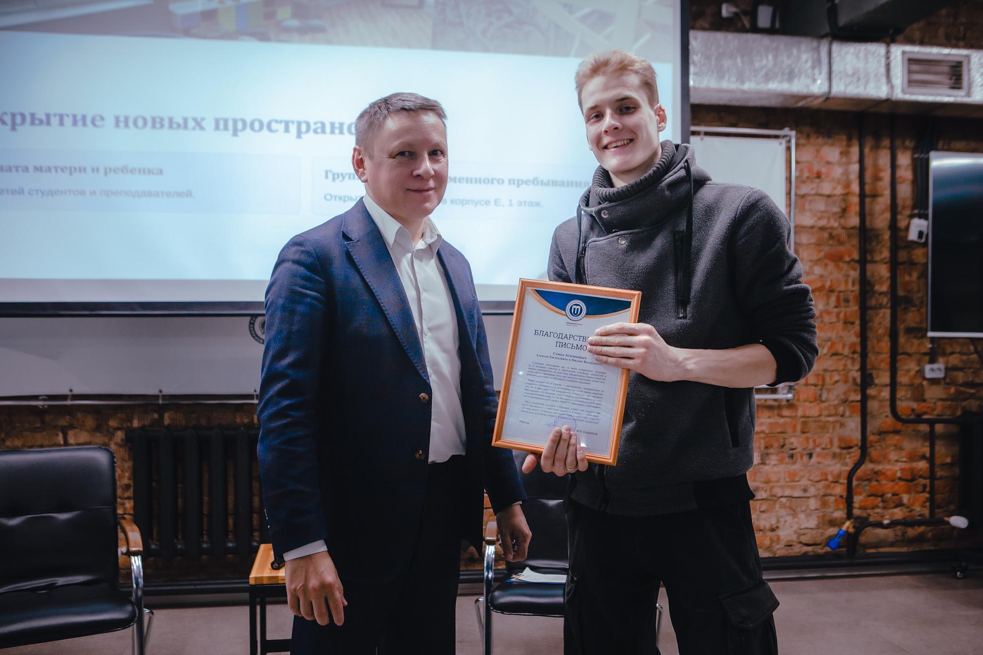 Семьи, присутствующие на встрече, получили благодарственные письма и подарки от вуза.