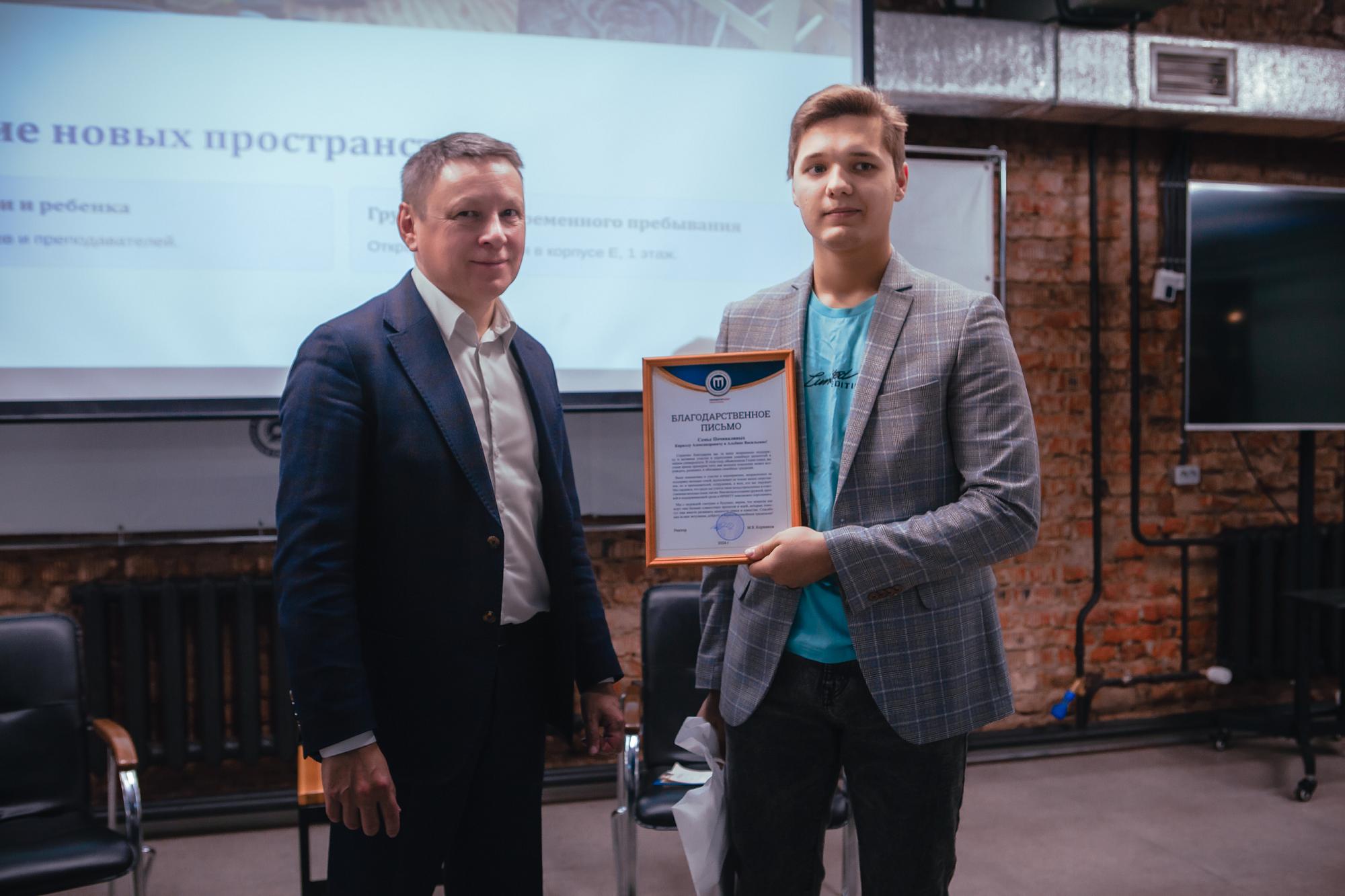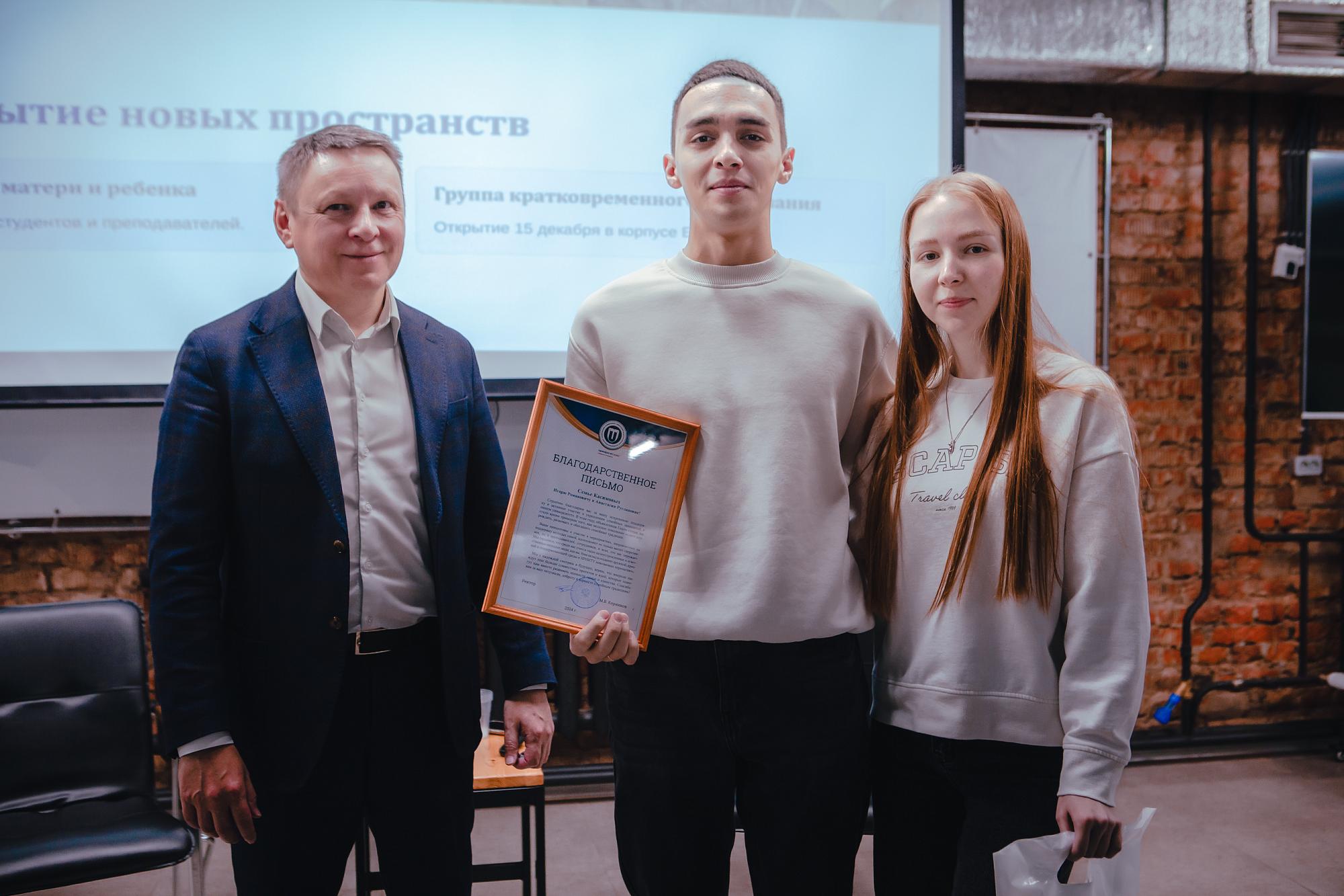 «Коллектив Управления по молодежной политике в 2024 году одержал победу в конкурсах «Росмолодежь. Гранты» и «Помоги маме учиться». Благодаря этим средствам мы организуем 15 ноября тренинг «Моя будущая роль родителя», 22 ноября пройдет семейный фестиваль. Уже доступна для пользования комната матери и ребенка, 15 декабря на первом этаже Е-корпуса откроется группа временного пребывания детей студентов и сотрудников», - анонсировала Кристина Веретенникова.