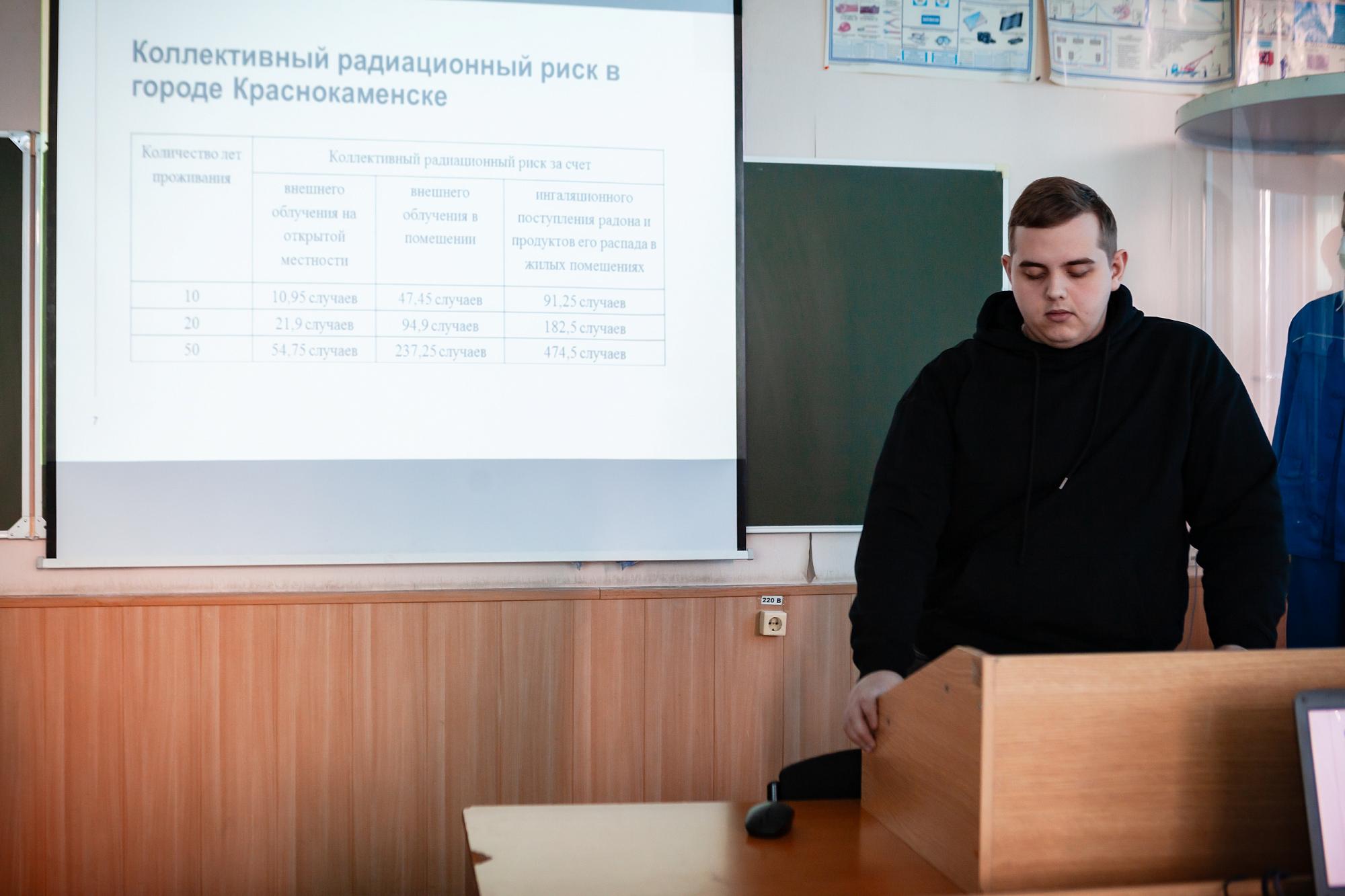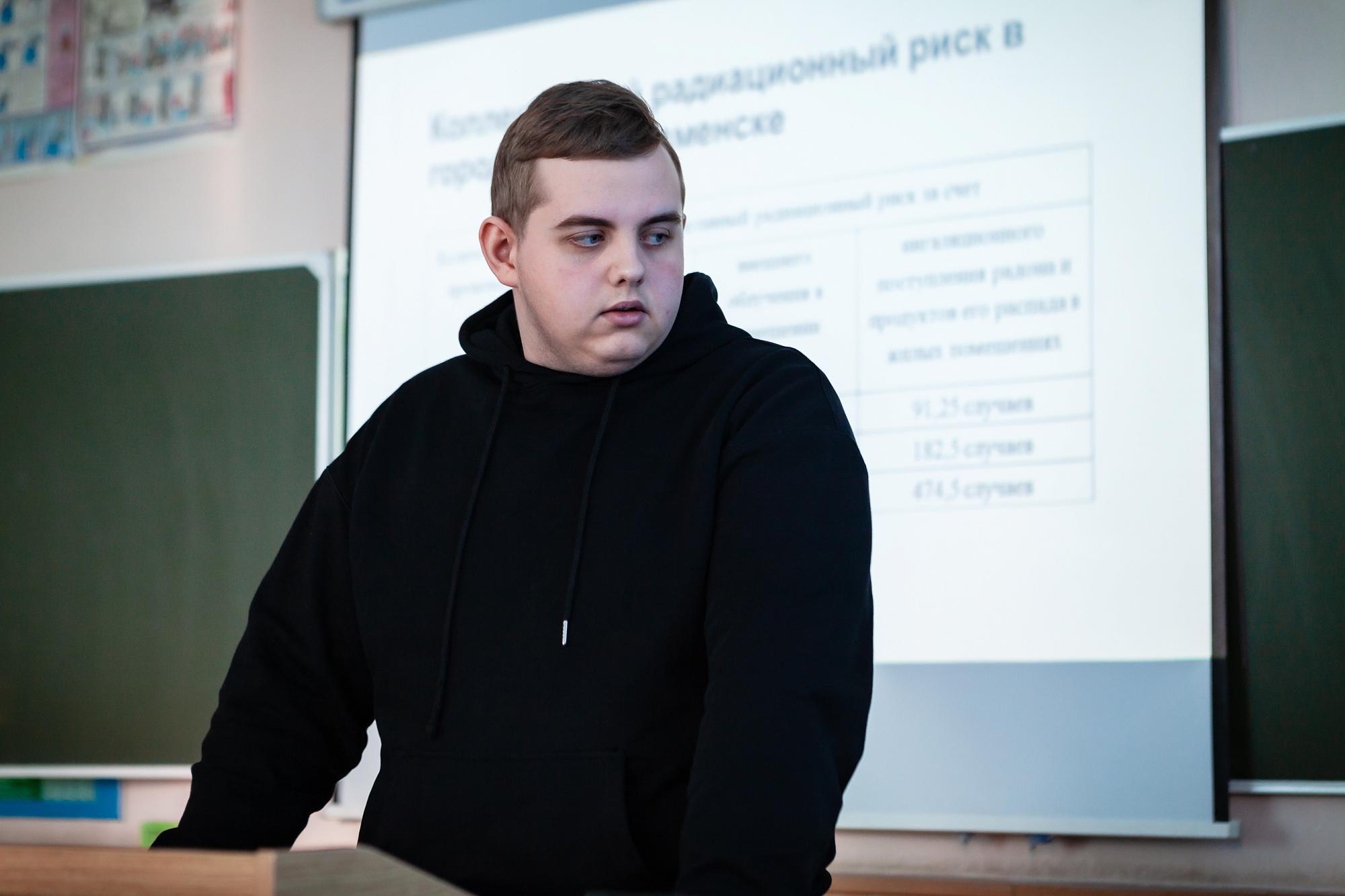 Второкурсник Максим Романов рассказал о радиационной безопасности в Забайкалье, обратив внимание на добычу урана подземным способом, использование стройматериалов с повышенным содержанием радионуклидов. Максим рассчитал коллективный и индивидуальный радиационный риск.