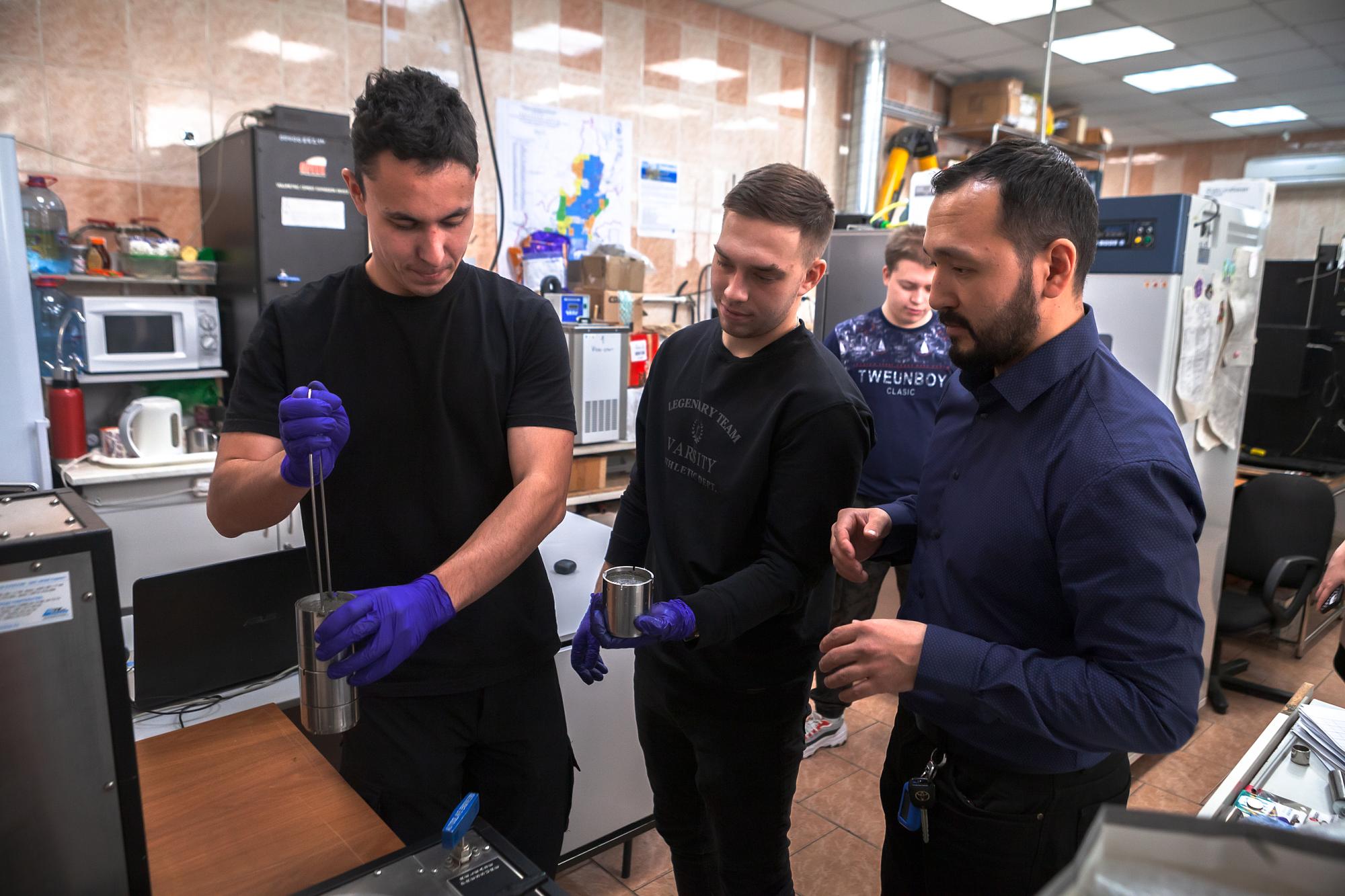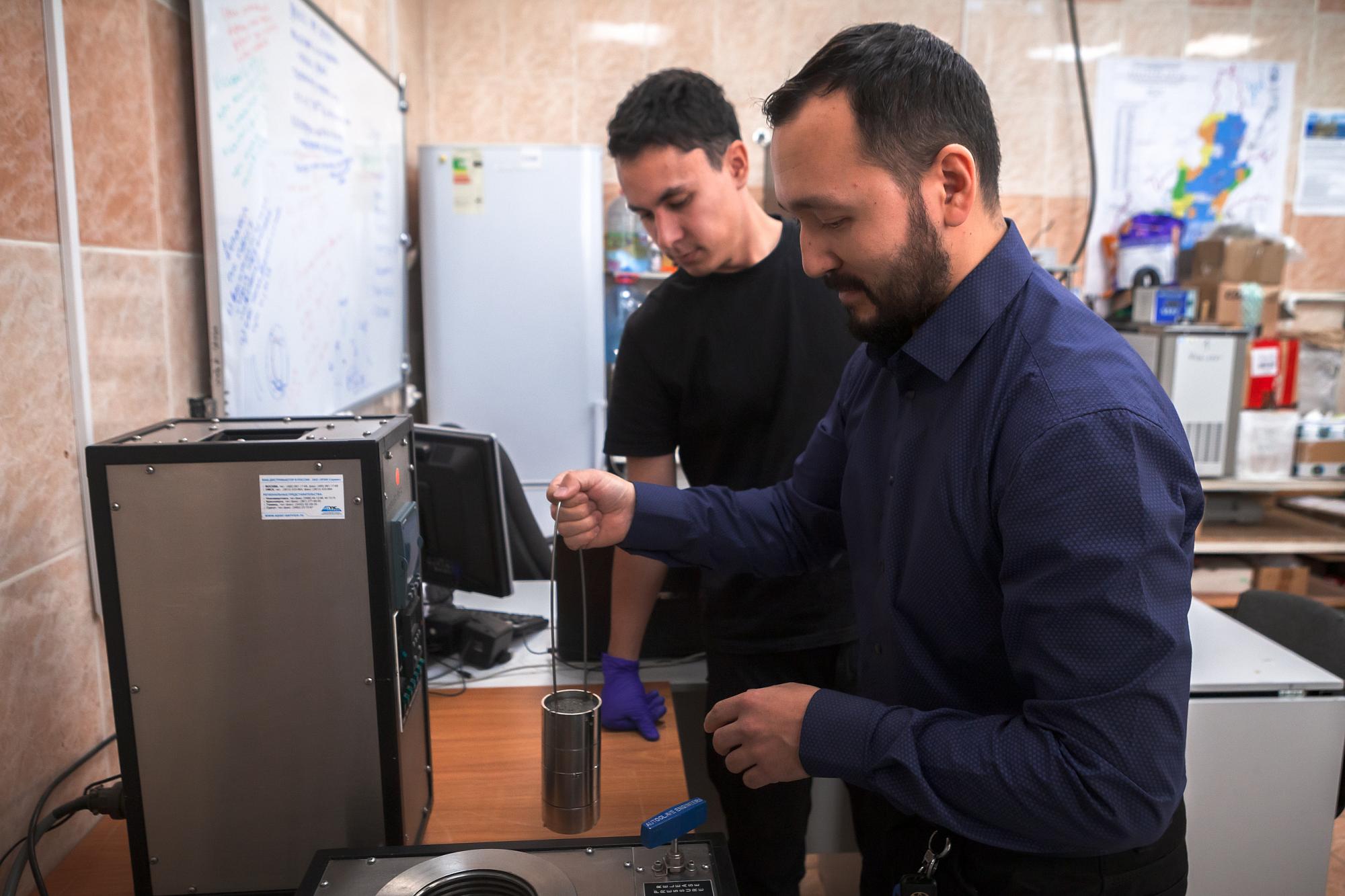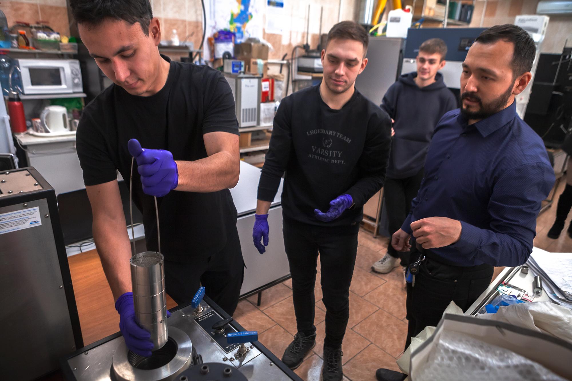 Сотрудники кафедры нефтегазового дела ИРНИТУ разработали методику и лабораторное оборудование для исследования адгезии (прилипания) тампонажного камня к ограничивающей поверхности. Моделируя реальные условия схватывания цементного раствора, политеховцы определяют наиболее подходящие составы для крепления нефтяных и газовых скважин. Специалисты испытывают различные рецептуры, повышающие изоляцию обсадных труб от стенок скважины. На проведение исследований студенты и преподаватели получили 200 тысяч рублей в рамках Программы «Приоритет 2030».