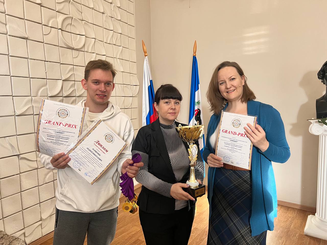 Школа современной хореографии «Шаги» завоевала гран-при, исполнив полюбившуюся зрителям «Посконную». Номер «Прогулка» жюри отметило дипломом I степени. Аналогичной награды удостоена совместная с «Этнобитом» постановка «Гармония».