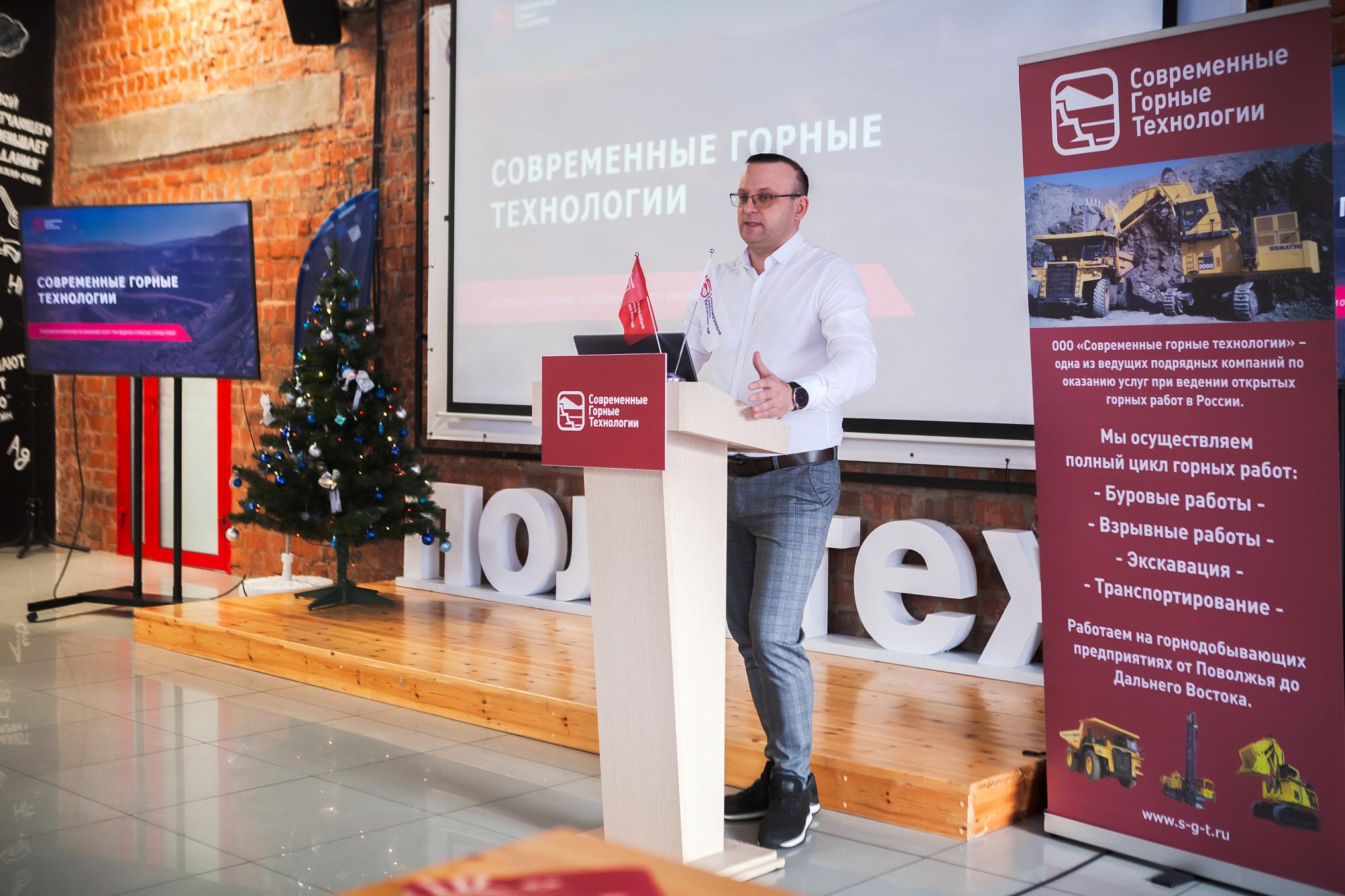Презентацию 19 декабря провел замглавного инженера ООО «Современные горные технологии» Алексей Трещенко. По его словам, компания-подрядчик ведёт полный цикл горных работ - от бурения скважин и экскавации до транспортировки и переработки полезных ископаемых. Также специалисты предприятия разрабатывают проектную документацию, производят компоненты взрывчатых веществ, строят ГОКи и управляют горными проектами.