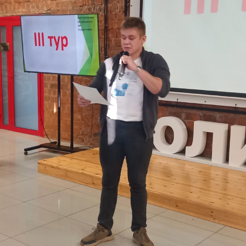 Одним из победителей оказался первокурсник Института энергетики Игорь Новокрещин. Как считает студент, успех в конкурсе ему принесли эрудиция, уверенность в себе и умение использовать разные приёмы в работе с аудиторией: