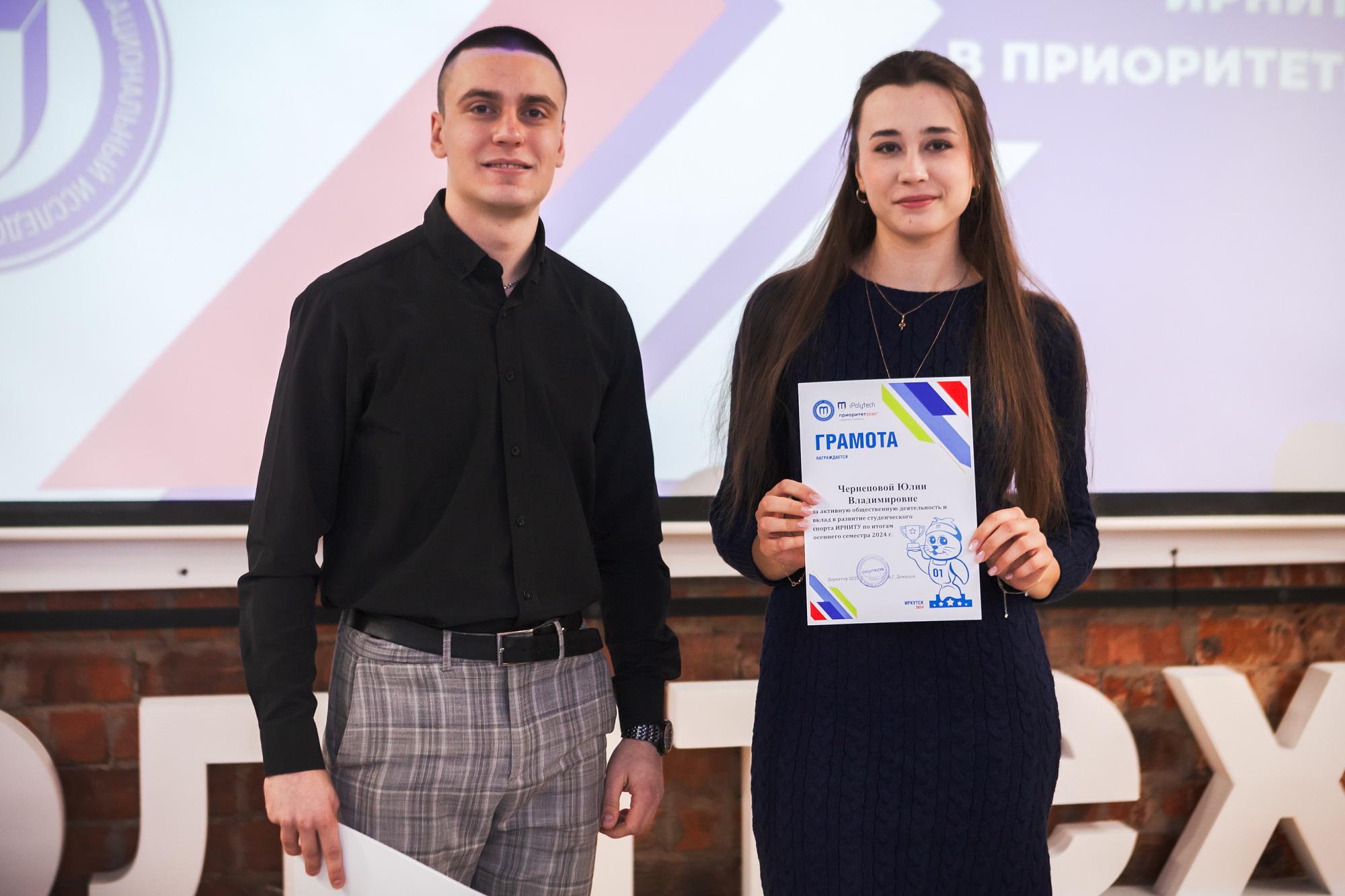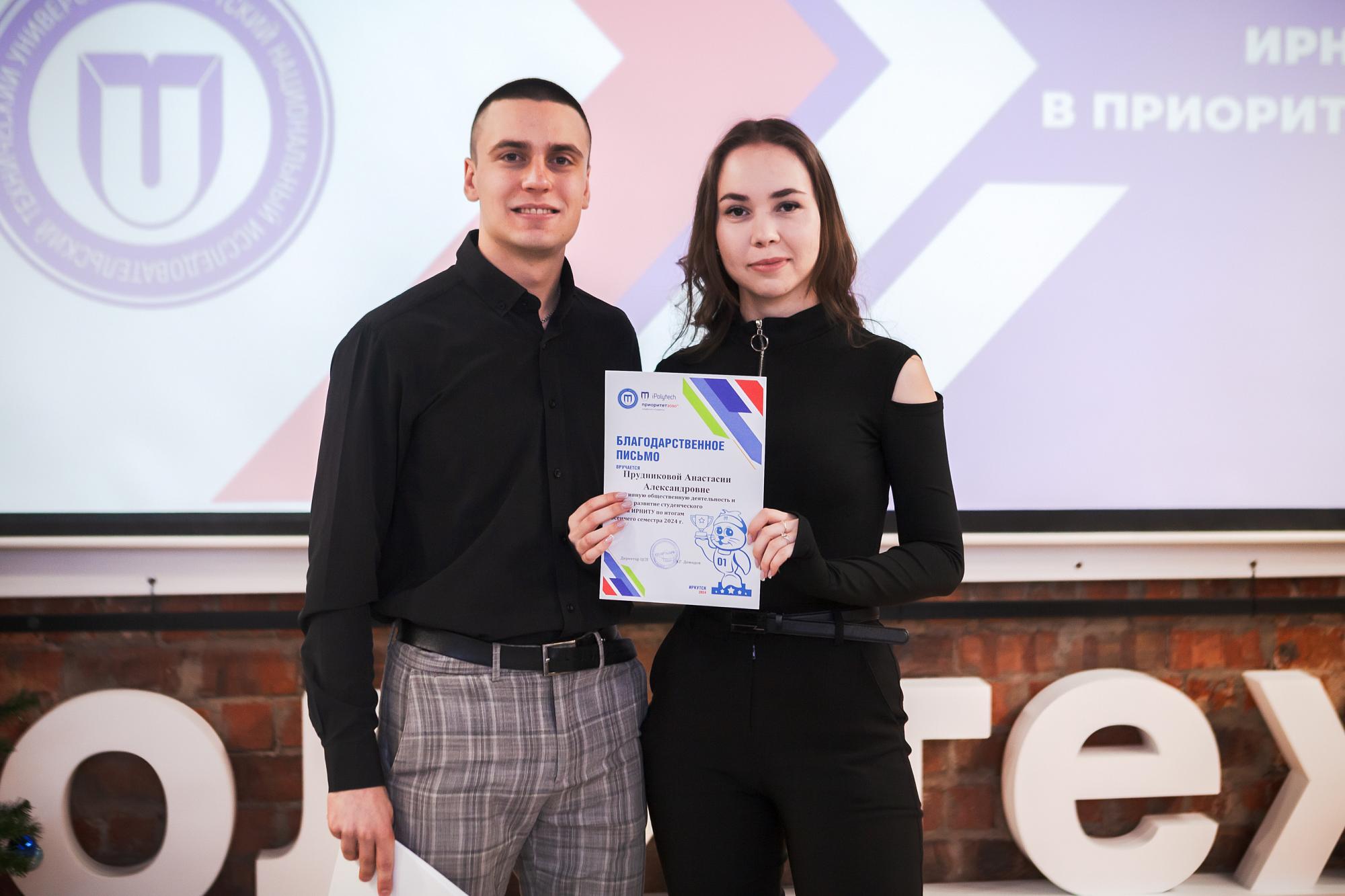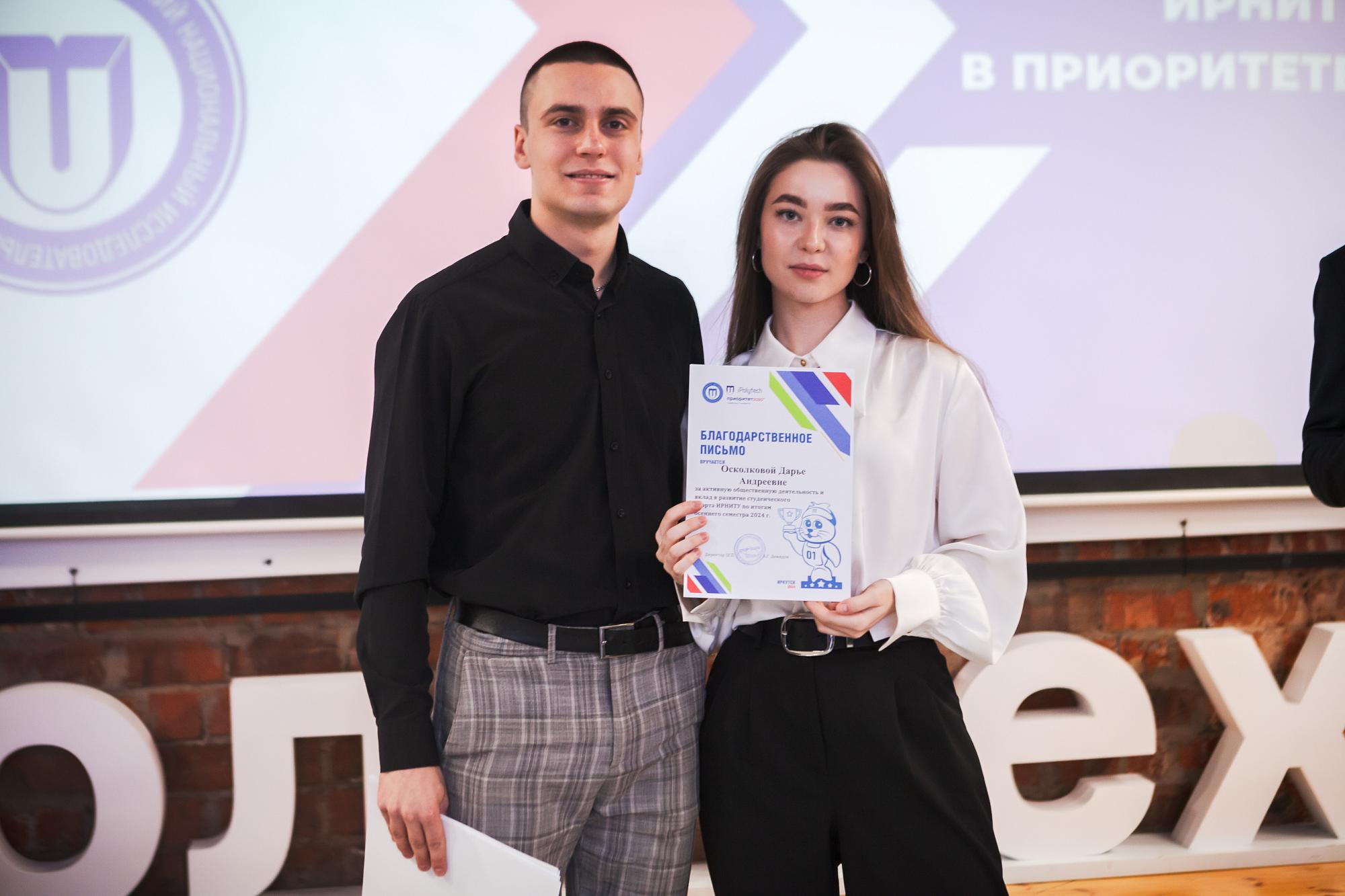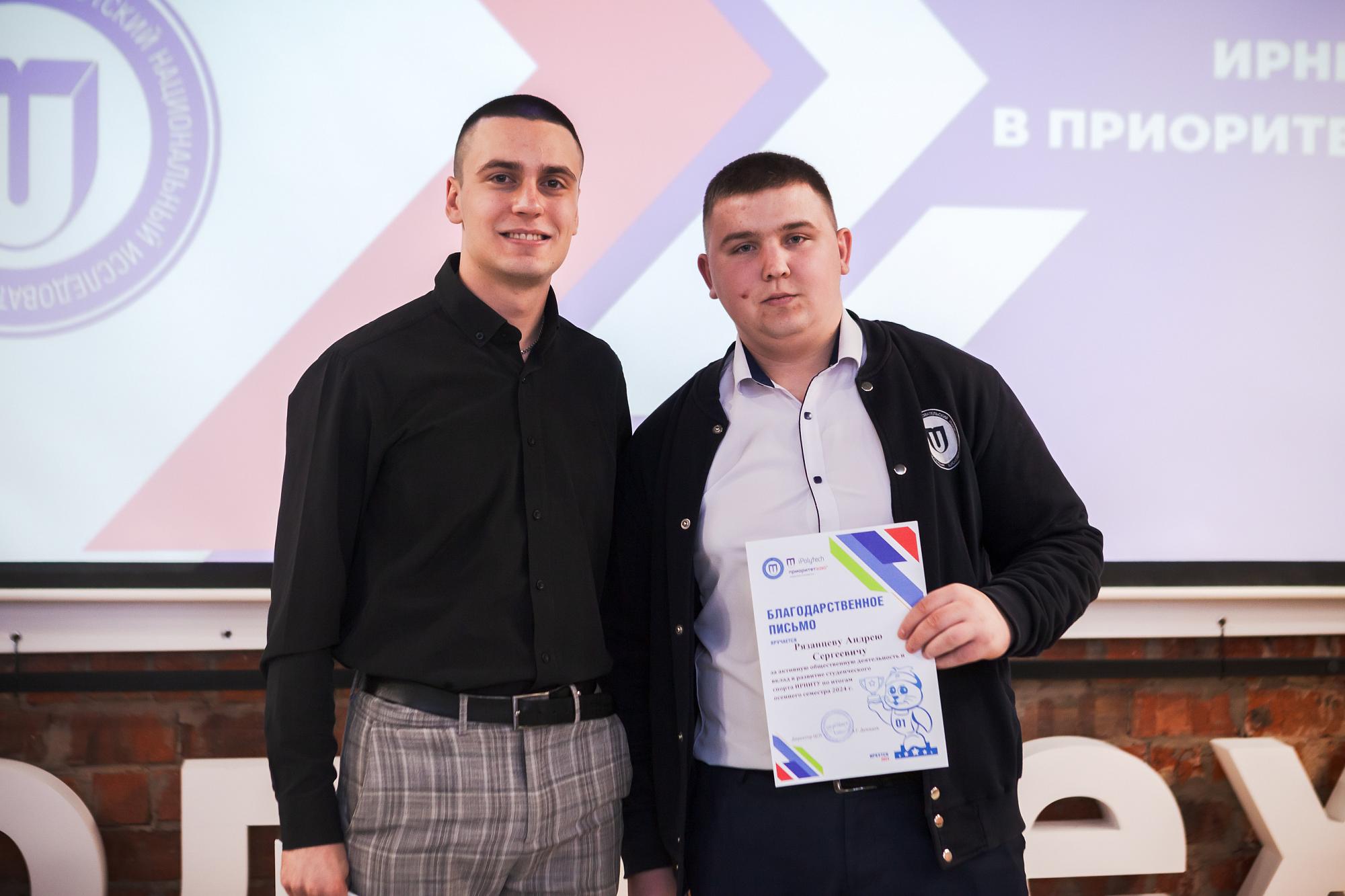 Председатель ССК «ИРНИТУ» Илья Чернуха отметил грамотами своих коллег – 16 событийных менеджеров. Студенты организуют мероприятия, занимаются дизайном и медиа, работают со спонсорами и др.