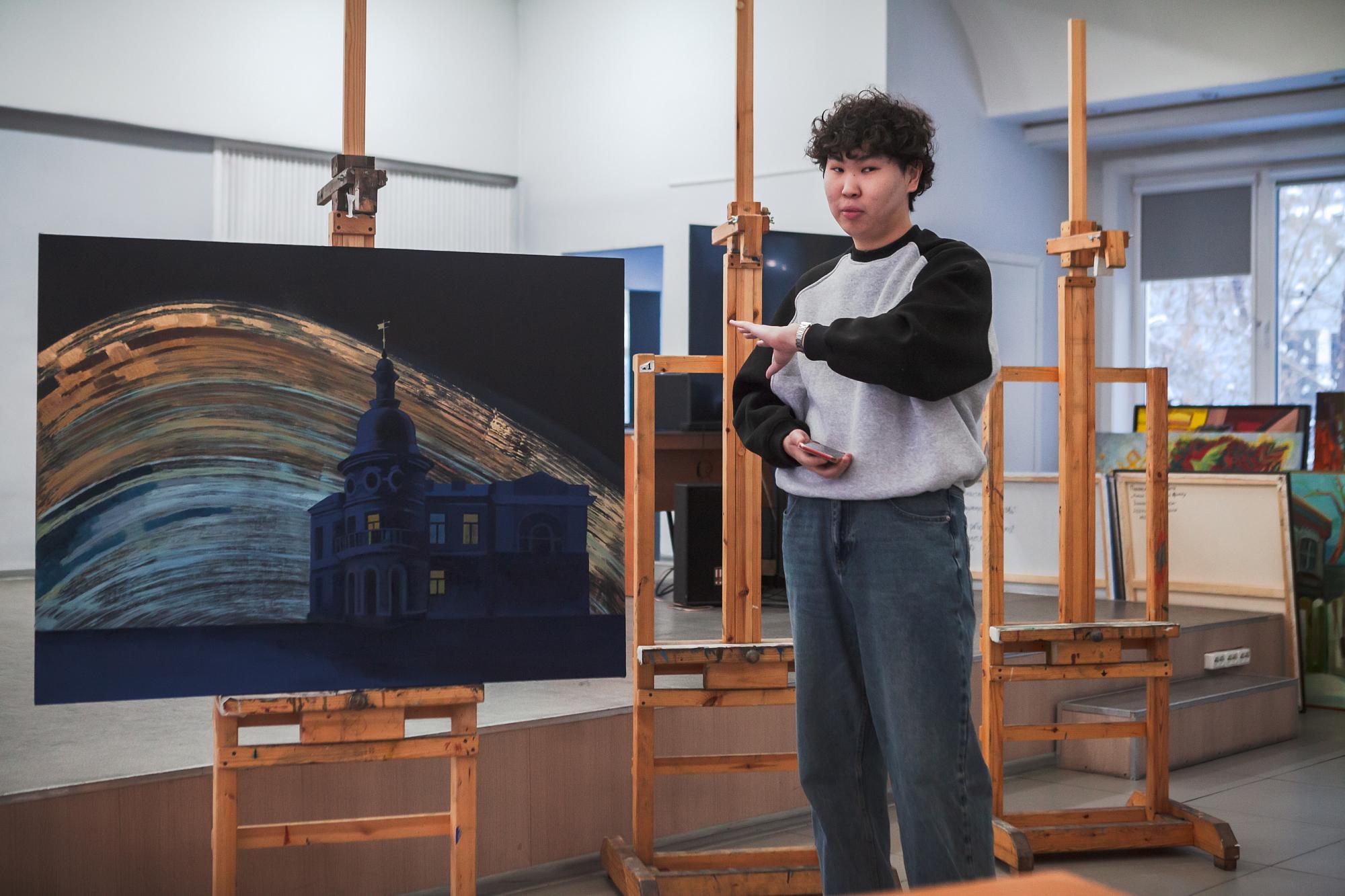 Среди авторов были и китайские студенты. Например, Ли Цзяо обратилась к образам иркутских храмов. Айникар Айбакар вдохновился триумфальными воротами, украшающими вход в один из университетов Пекина.