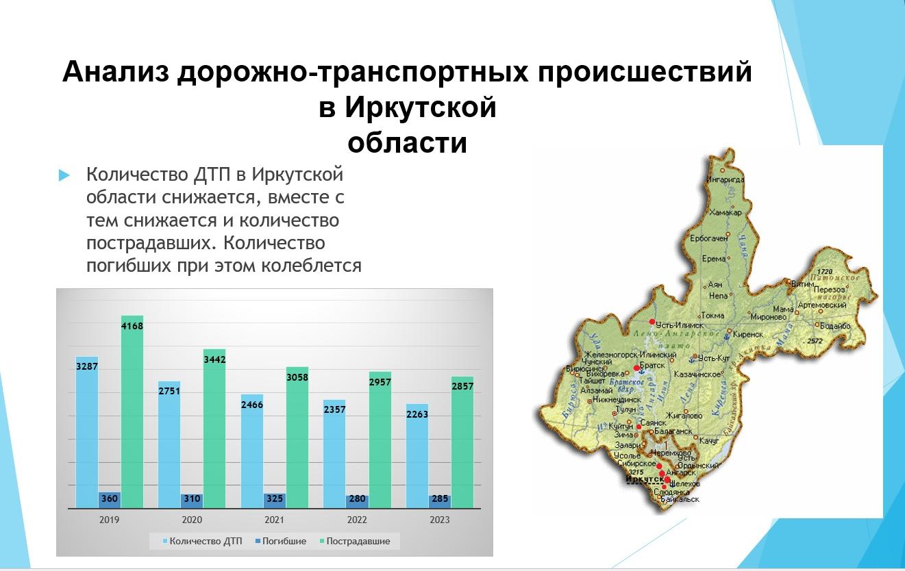 Анастасия Васильева (Ковальчук) ранее была специалистом по охране труда в транспортной компании, сейчас трудится по профессии в школе г. Тайшет. Магистрантка предложила усовершенствовать способы снижения техногенных рисков автотранспортной системы Тайшетского района. Она проанализировала статистику по ДТП, выяснив, что с 2019 года число аварий на дорогах района снижалось, а в 2023 году их количество выросло почти на 28%. Среди причин происшествий выделяют вождение в нетрезвом виде, ошибки водителей при обгоне, неисправность грузовиков, плохую погоду.