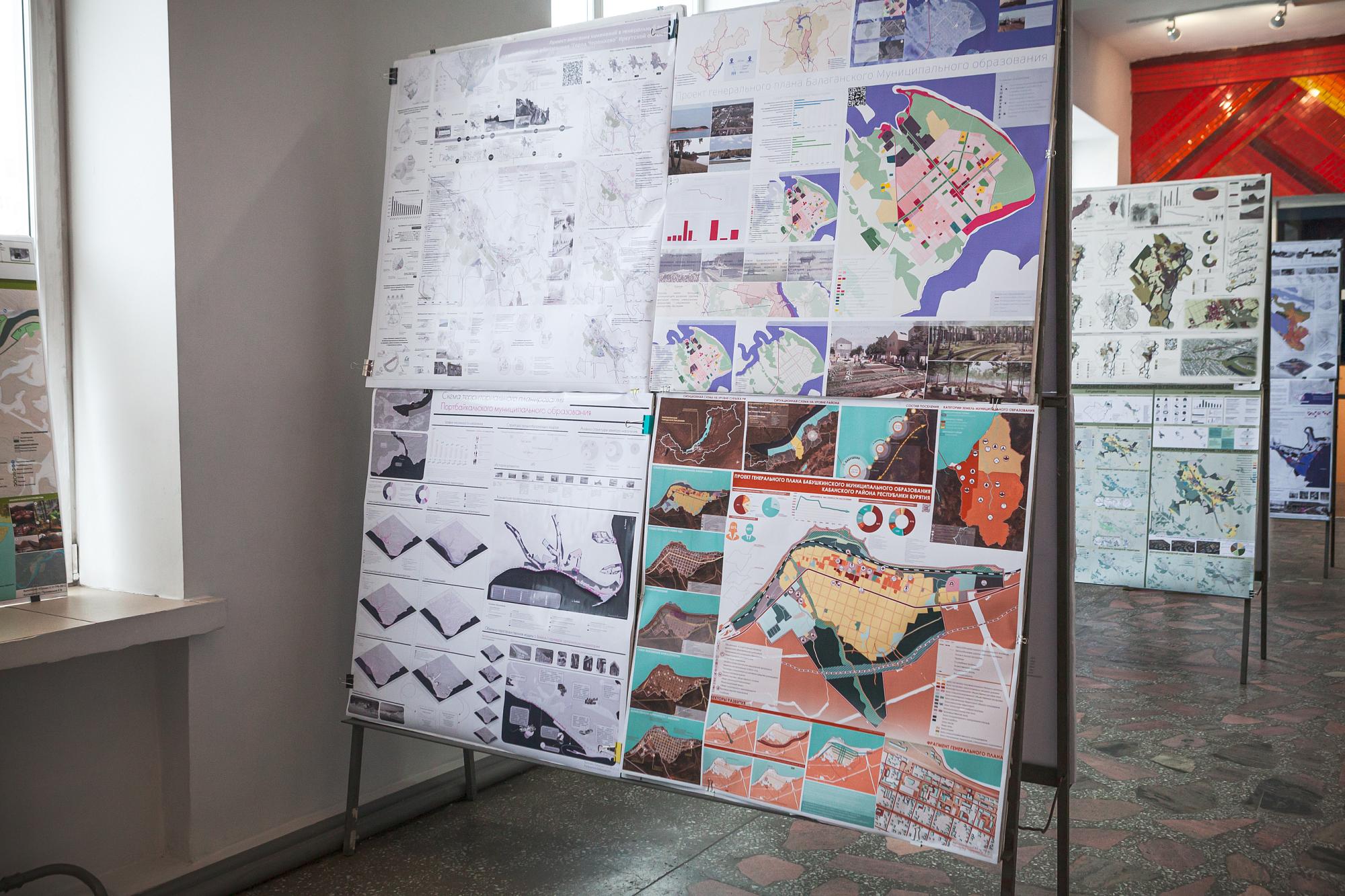 Планшеты с работами будущих градостроителей доступны для просмотра на третьем этаже корпуса «К». По результатам выставки будут выбраны три лучших курсовых проекта.