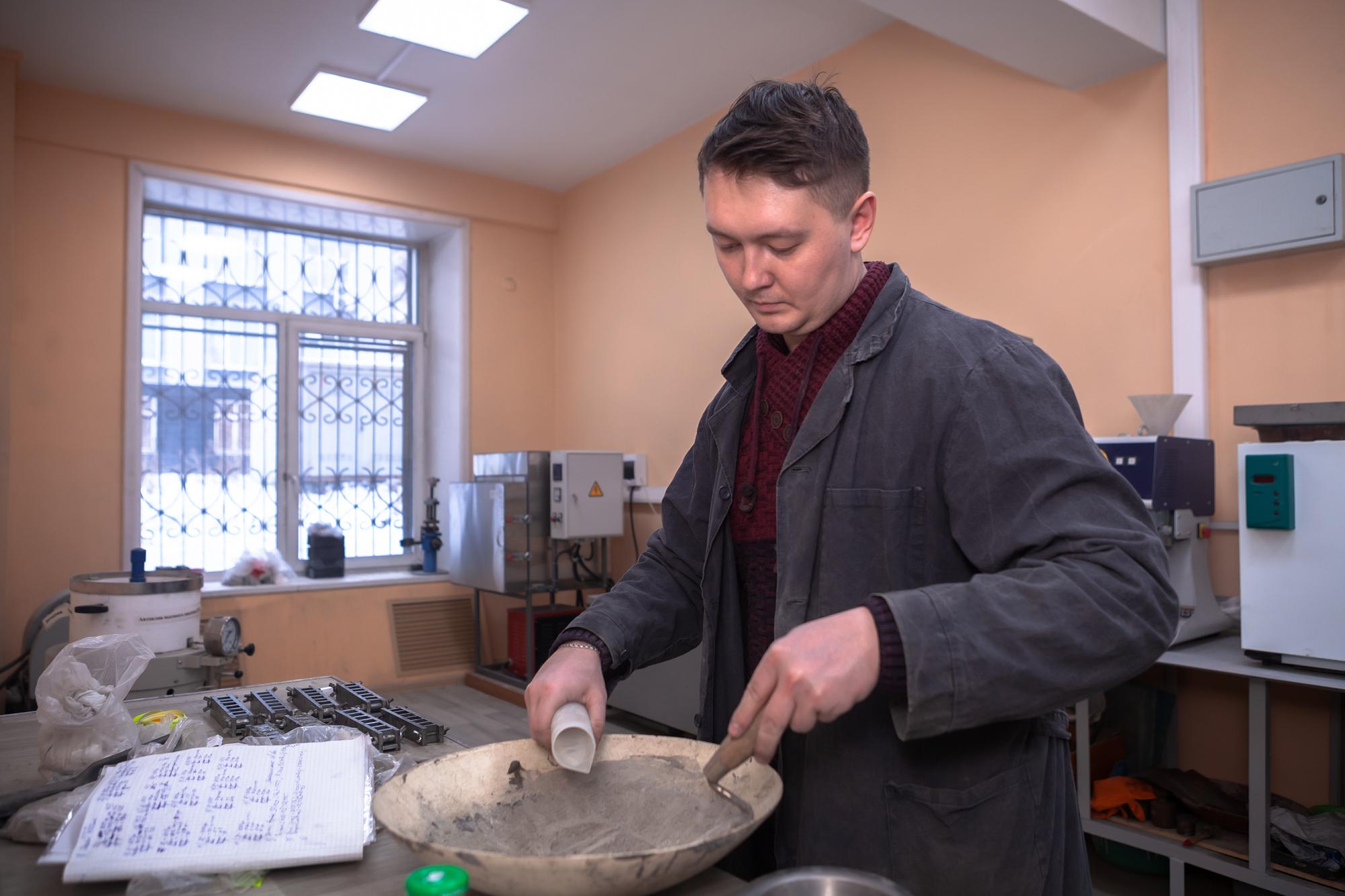 Аспирант выпускного курса ВСГУТУ Андрей Иванов (научная специальность «Строительные материалы и изделия») работает над повышением трещиностойкости гидротехнического бетона с применением композиционного вяжущего. Результаты предстоящей диссертации молодой ученый изложил в девяти статьях, шесть из которых в журналах, рекомендованных ВАК. На стажировке в ИРНИТУ Андрей Иванов работает с реометром и высокочувствительным анализатором.
