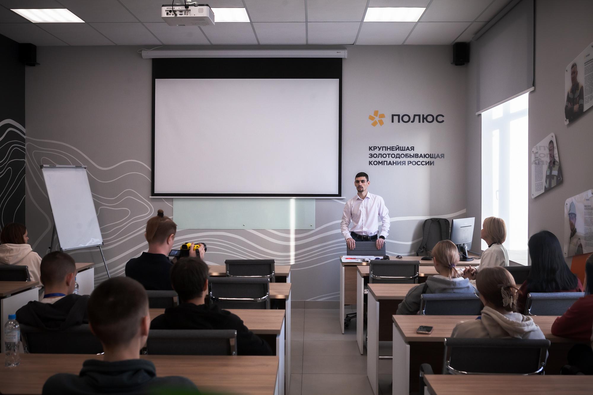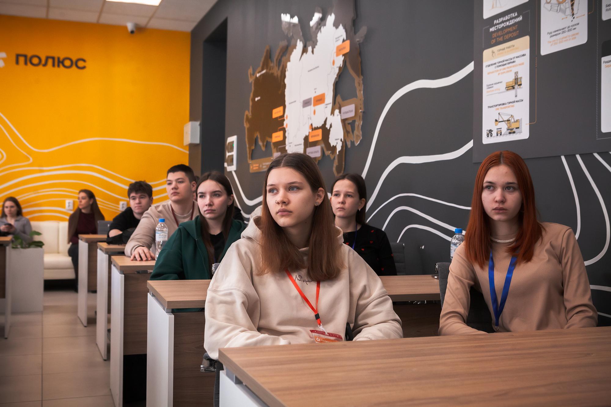 Знакомясь с экспертами «Полюса», школьники Приангарья узнали об истории освоения Вернинского месторождения и перспективах Сухого Лога, которое находится на стадии опытно-промышленной разработки.