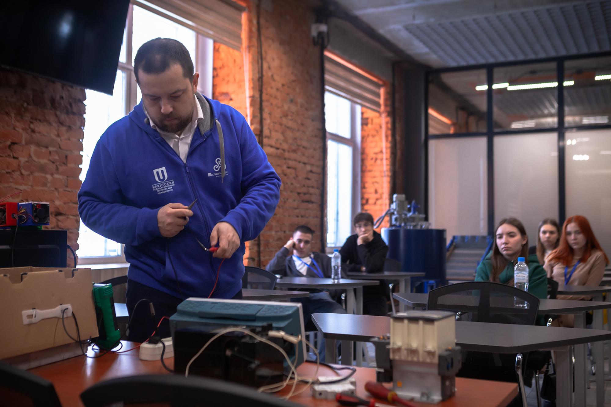 Школьников также заинтересовало знакомство с экспертом компании Николаем Линевым, который более 10 лет назад окончил кафедру строительных, дорожных машин и гидравлических систем ИРНИТУ, а сейчас руководит созданием технологий механизации. Он рассказал о своем опыте работы в «Полюсе», ориентируя ребят на работу в сфере автоматизации горного производства.