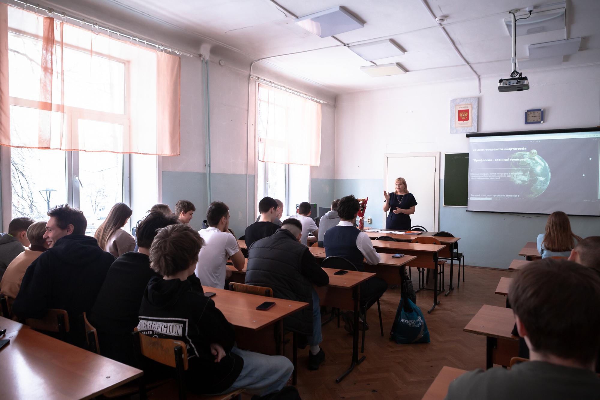 Мероприятие открыла преподаватель техникума Надежда Тютина, рассказавшая студентам историю становления Топографической службы ВС РФ.