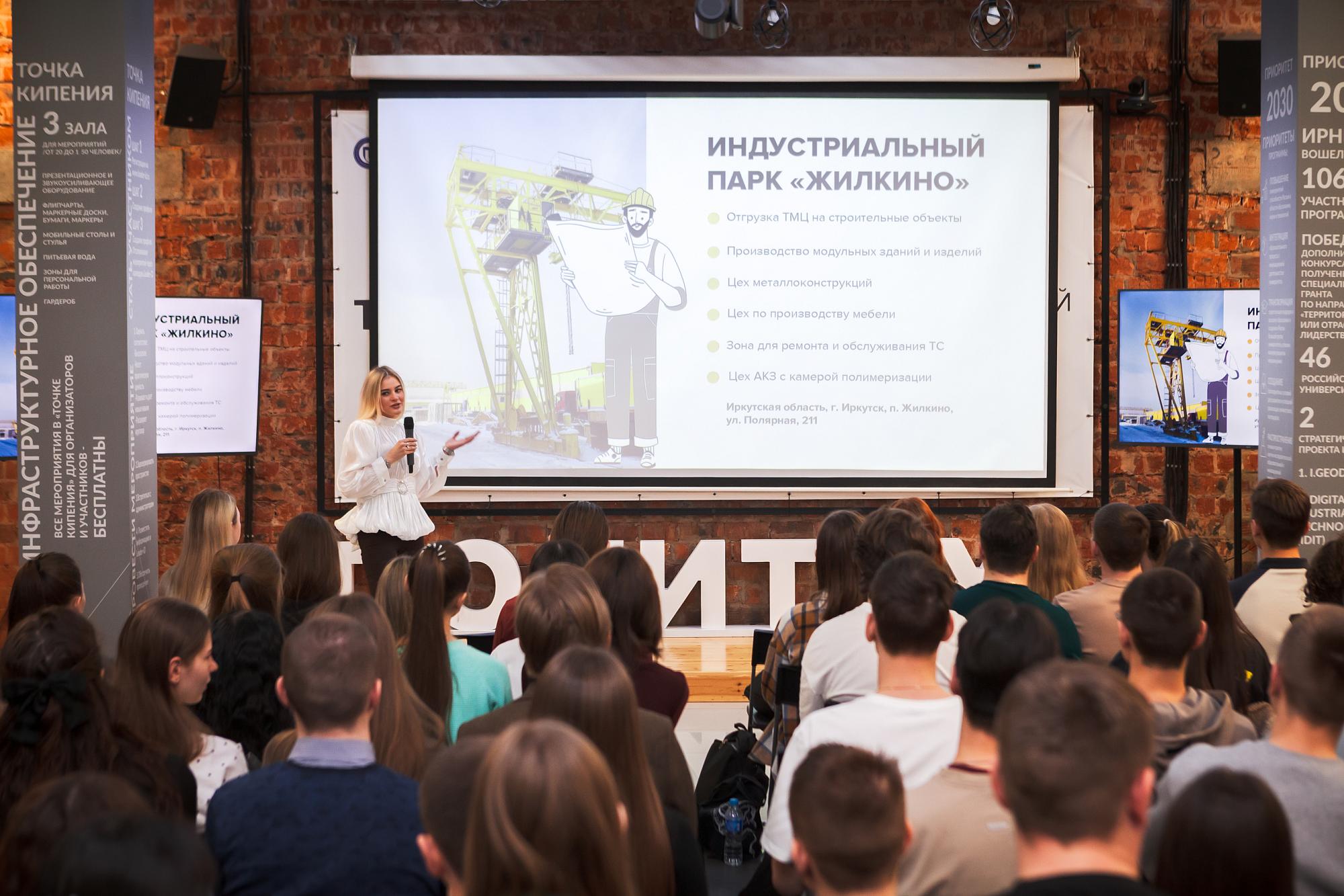 Презентацию провела специалист отдела по работе с молодежью Полина Калашникова. Как она сообщила, центральный офис компании на 500 рабочих мест расположен в Иркутске. Сотрудникам доступны парковка, учебный центр, лаборатории, спортзал и столовая. Посетить офис и производственные базы могут все студенты, готовые начать карьеру в «СтройПроектСервис».