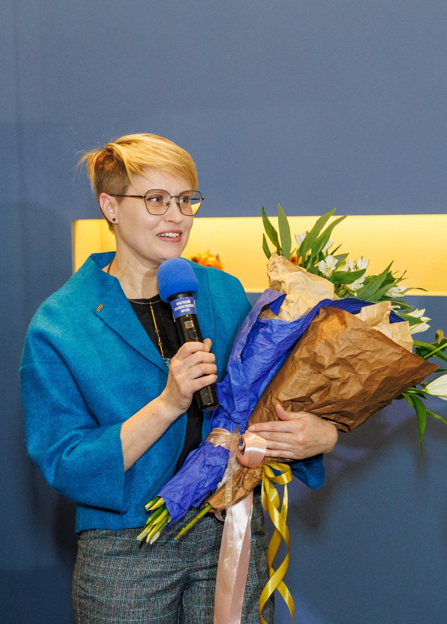 К поздравлениям присоединилась доцент ИРНИТУ и супруга Андрея Поляницы Наталья Довнич. Она вручила виновникам торжества цветы.
