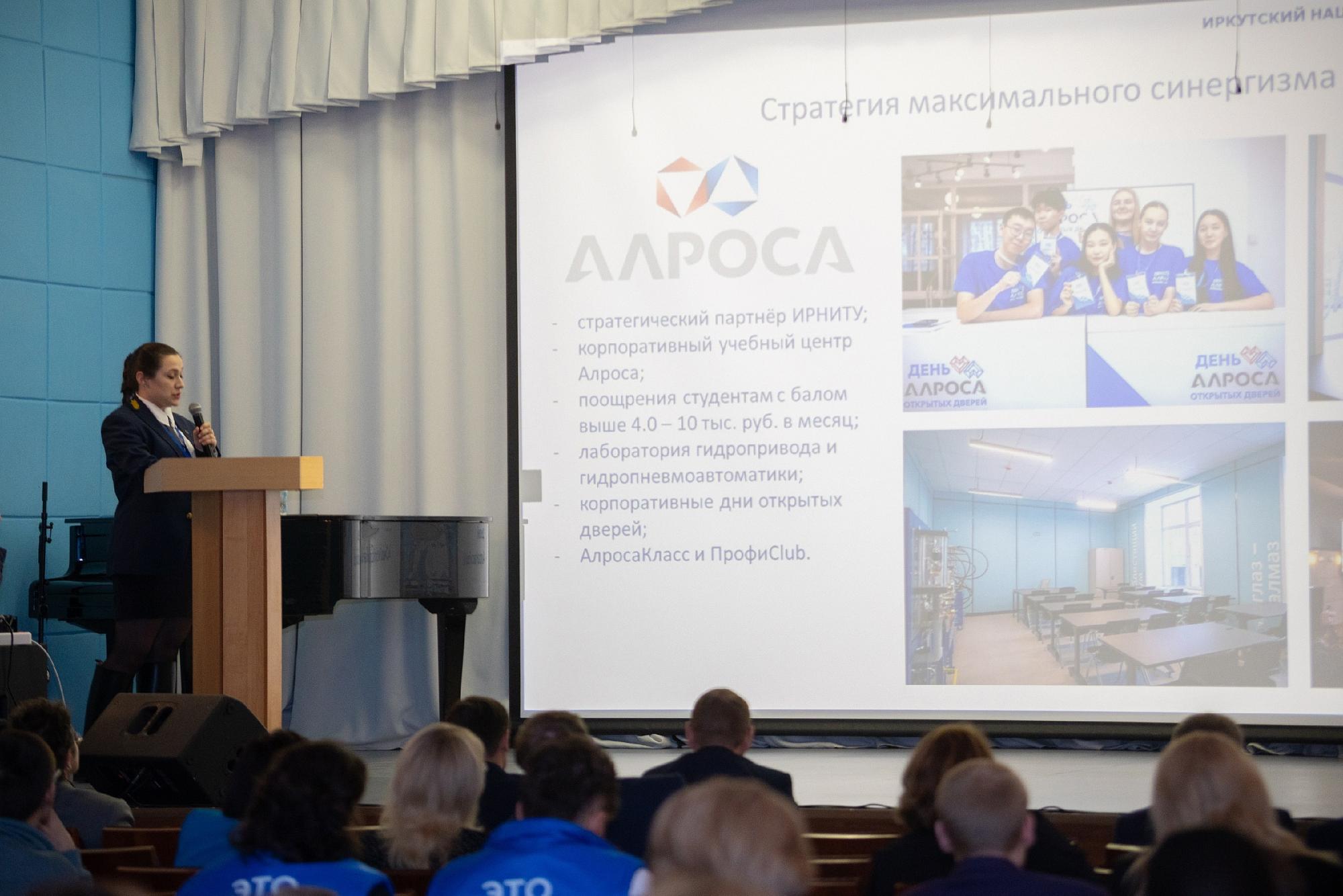 Вероника Гриднева выступила на кадровой сессии с докладом «Синергия науки и производства: новые горизонты для студентов». Она озвучила варианты сотрудничества предприятий с ИРНИТУ по вопросам практики и трудоустройства маркшейдеров и геодезистов, рассказав об СНО «Алидада».