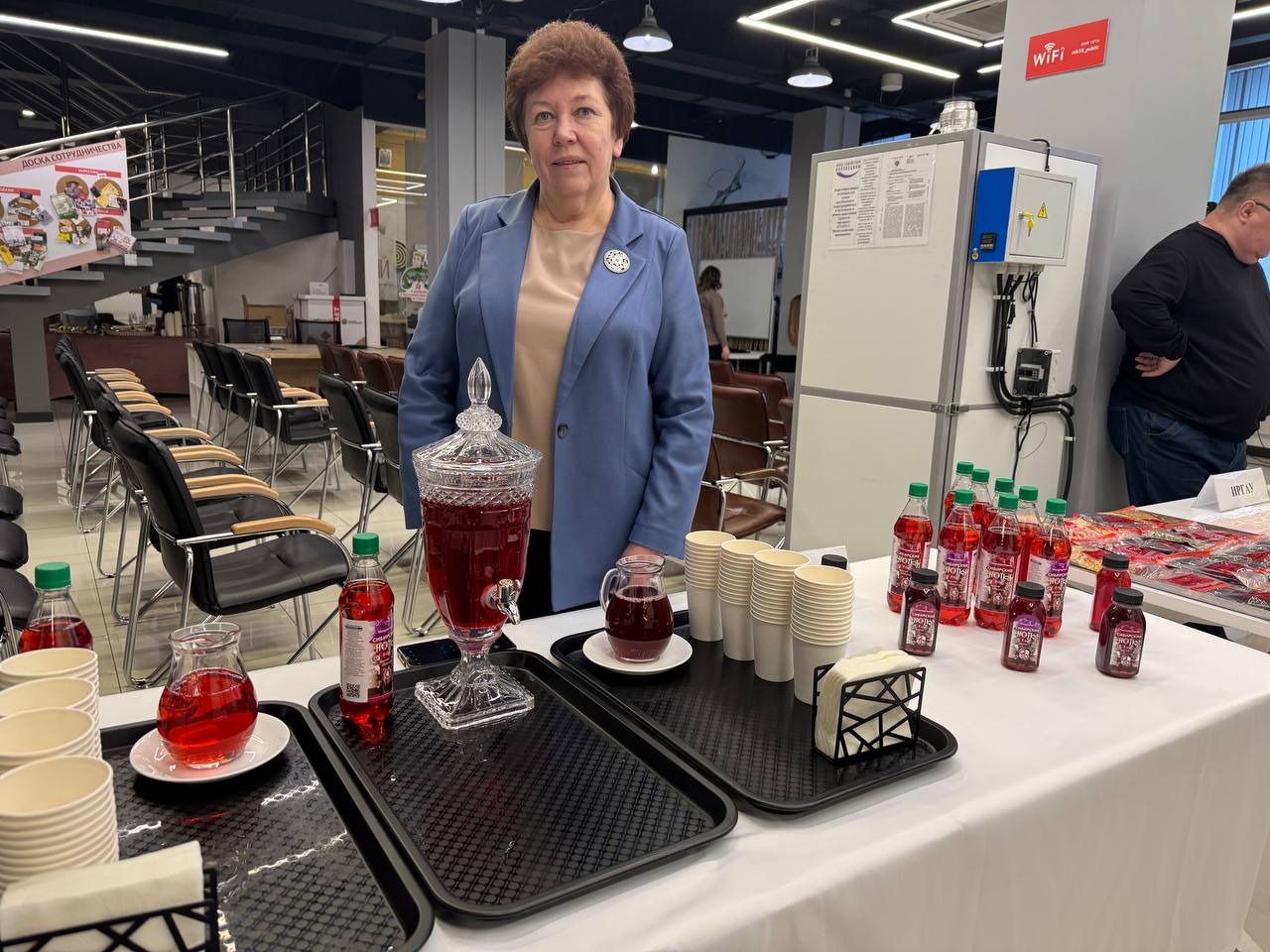Участники собрания познакомились с локальными продуктами Прибайкалья. Технолог ШБГ Галина Гусакова провела дегустацию морсов «Сибирские ноты». Гости отметили оригинальный и насыщенный вкус напитков, дизайн упаковки. Представителей гостиниц привлекла «сувенирка» в мини-форматах.