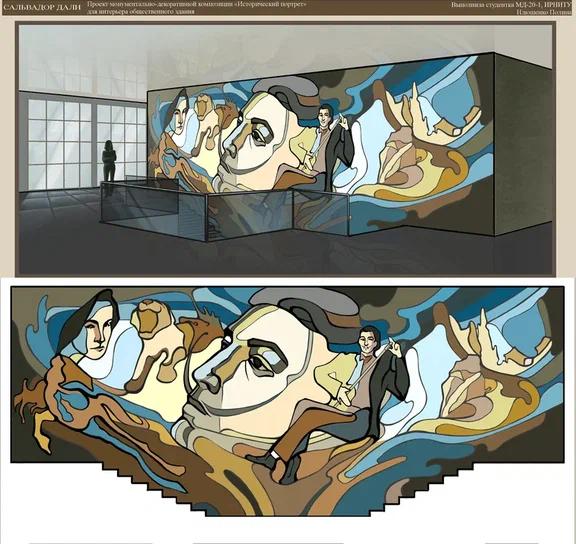 Лучшими признаны два автора общественных интерьеров. Полина Илюшенко создала эскиз монументально-декоративной композиции, посвященной Сальвадору Дали и проект «Ритм жизни» для актового зала ИРНИТУ. Эксперты конкурса также высоко оценили работу Алены Кицул «Ритм».