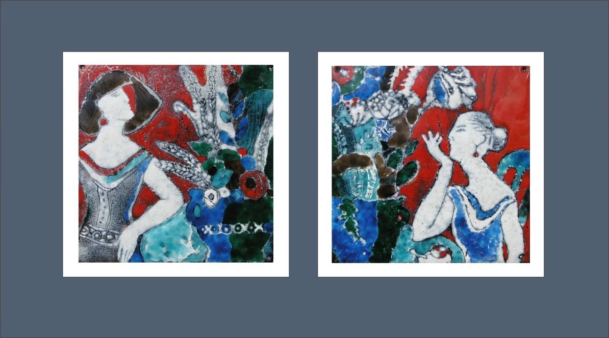 Доценту Анастасии Ижганайтене победу принесли эмалевые диптихи с интересными колористическими эффектами. По ее словам, на картине «Разговор», посвященной женской дружбе, изображкены девушки, которые неспешно беседуют за чаем. Диптих «Белая птица — Синяя птица» представляет собой визуальное размышление на тему удачи и свободы выбора в жизни человека.