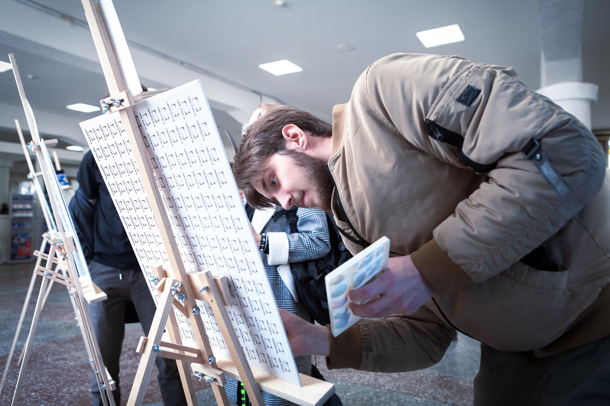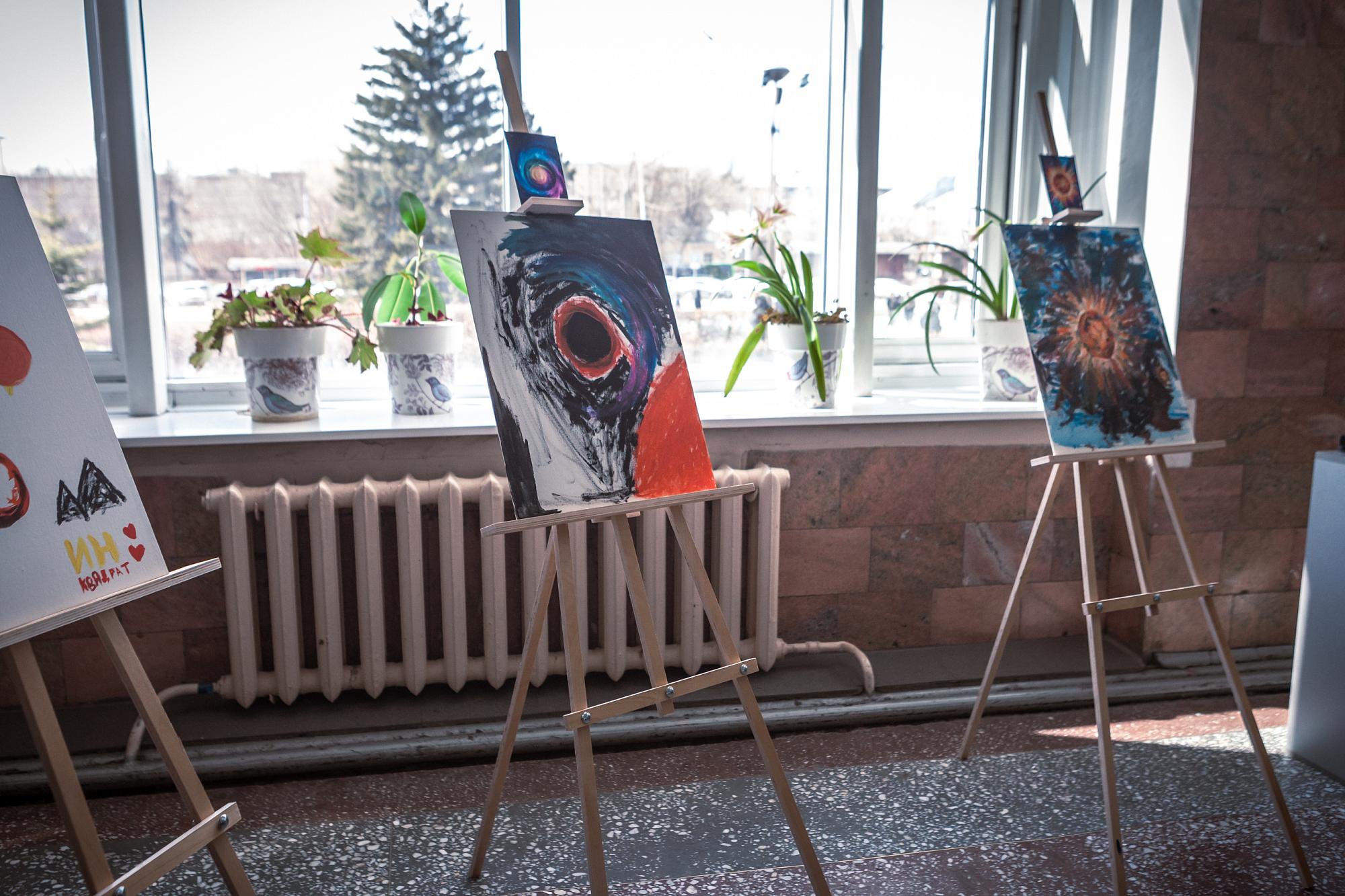 Интерес к творческому интерактиву проявил будущий журналист Максим Полянский, который изобразил на мольберте астронавта.