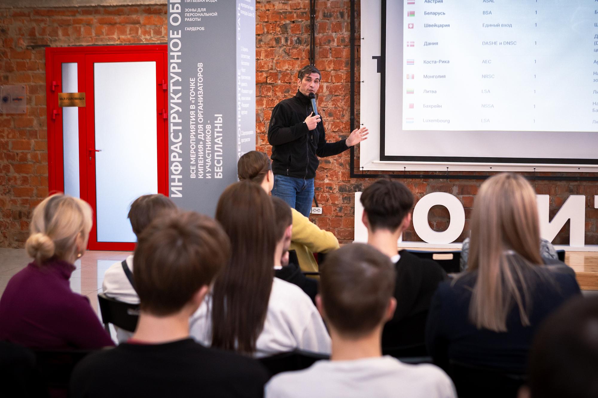 Лектор также рассказал о достижениях страны в освоении космического пространства, представил статистику по запуску ракет и спутников. Россия в числе с Китаем и США лидируют в космической гонке.